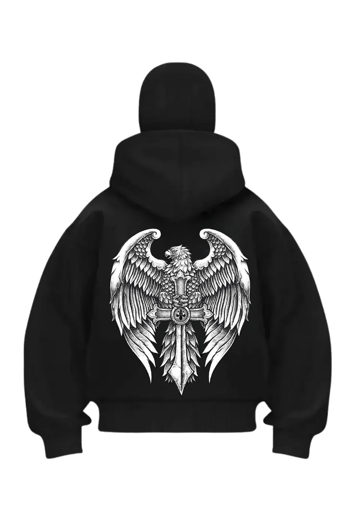 Kartal Türk Baskılı Siyah Samuray Kar Maske Sweatshirt Hırka