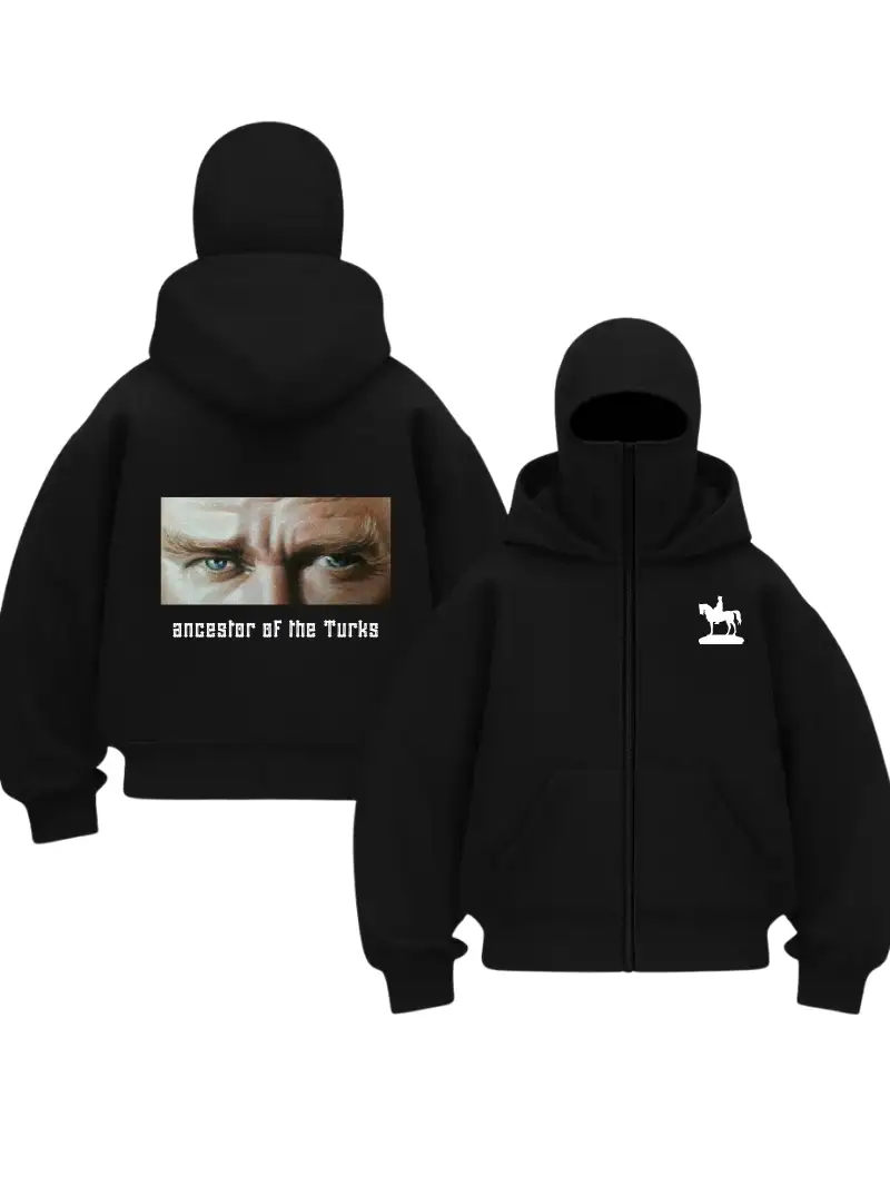 Siyah ATATÜRK Baskılı Kar Maskeli Unisex Sweatshirt Hırka