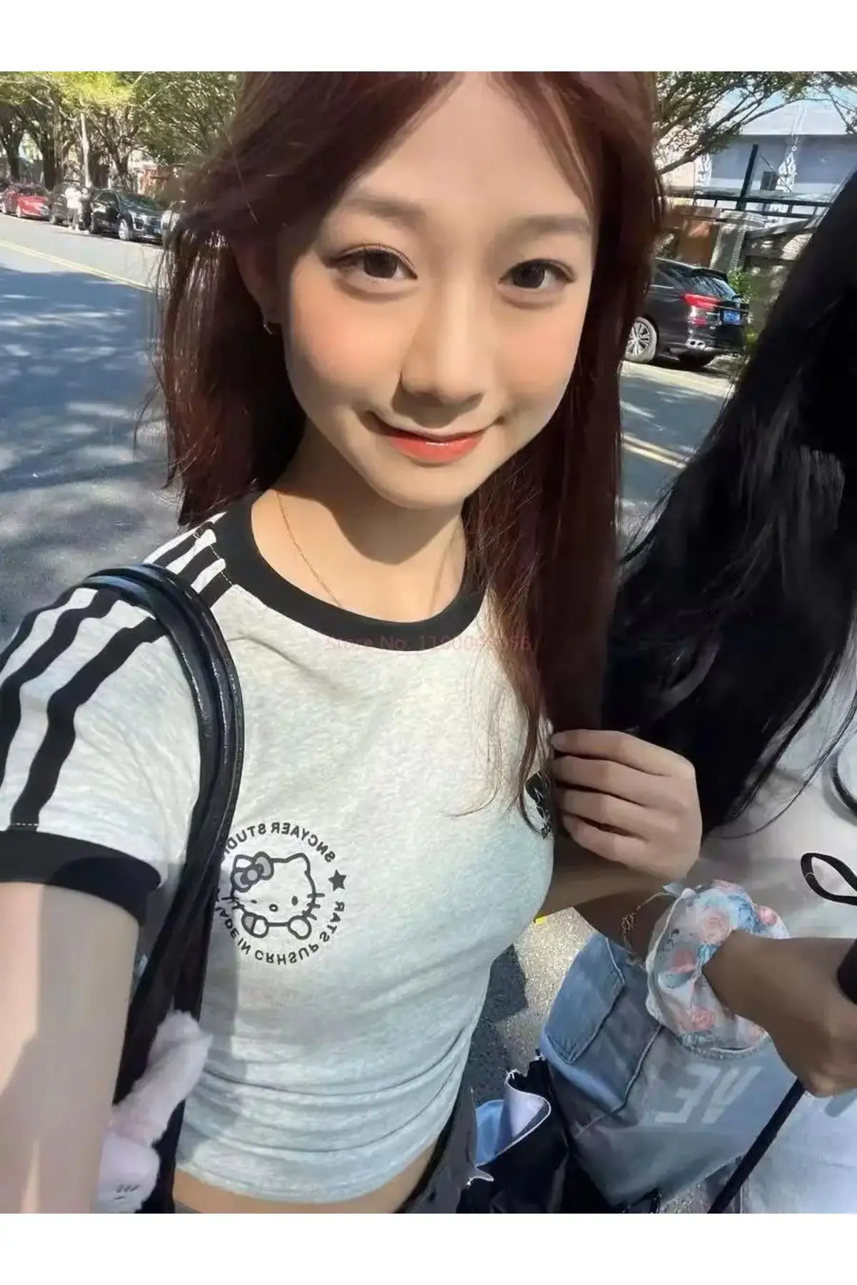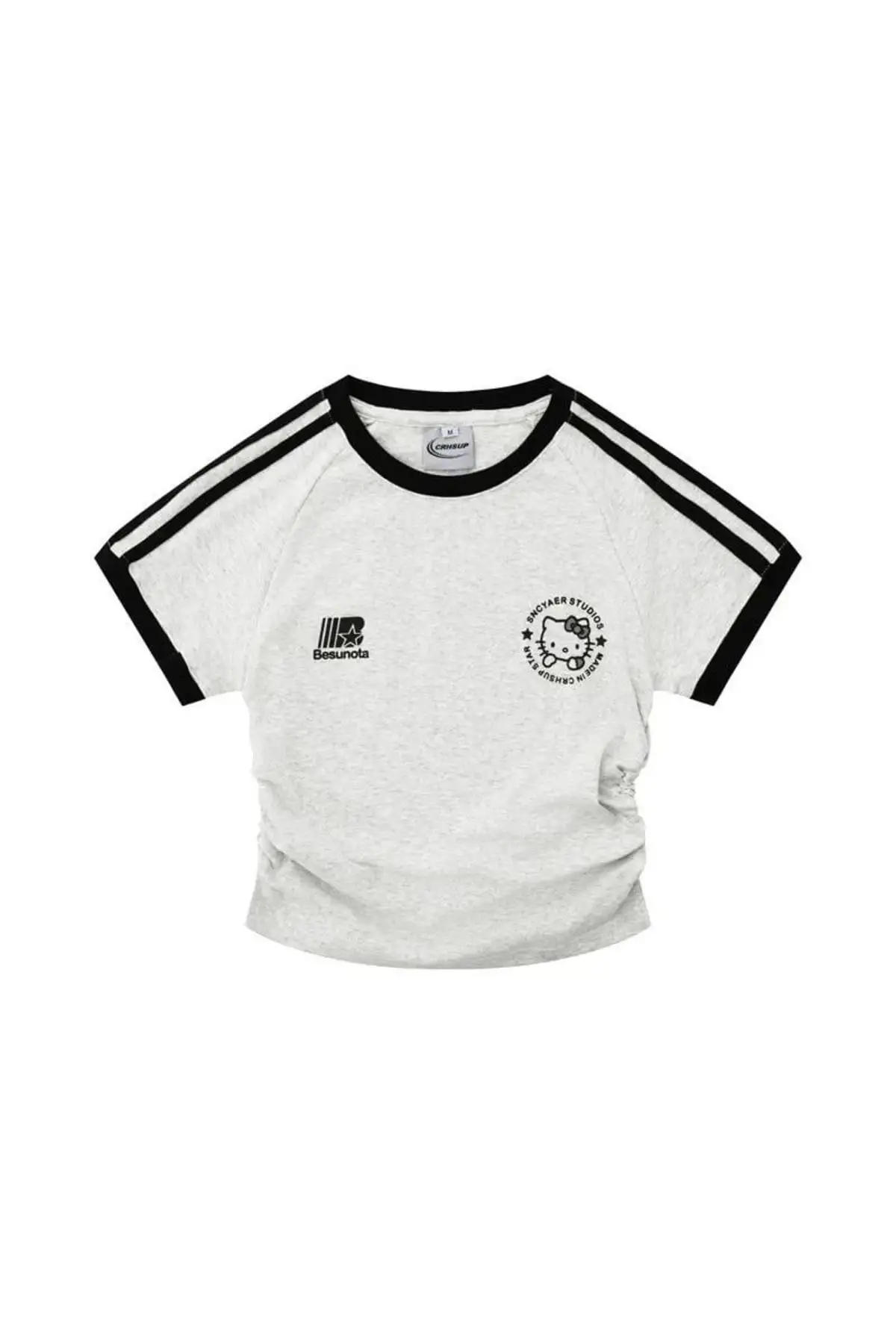 Tatlı ama havalı bir görünüm arıyorsan, bu crop tam sana göre! Kemer boy kesimiyle yüksek bel altlarla mükemmel uyum sağlayan bu parça, büzgü detayıyla vücut formunu ön plana çıkarıyor. Üzerindeki sevimli Hello Kitty baskısı ise stiline eğlenceli bir dokunuş katıyor.