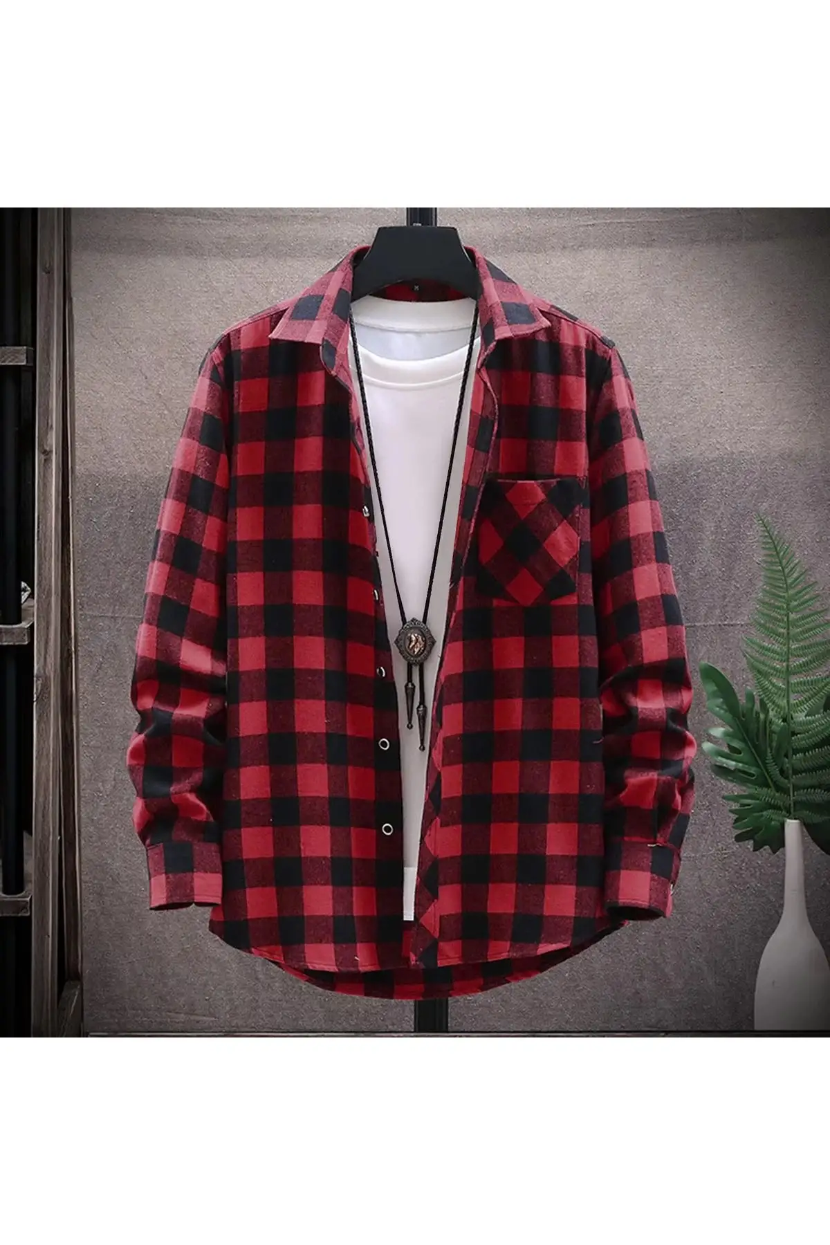 Kırmızı Ekoseli Siyah Oversize Kalıp Oduncu Gömlek