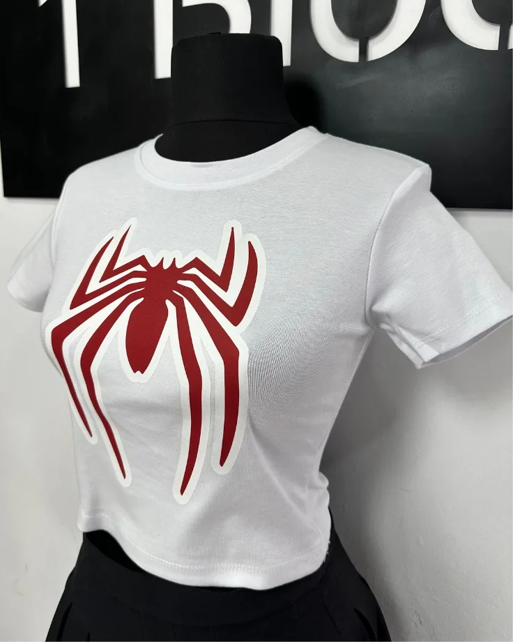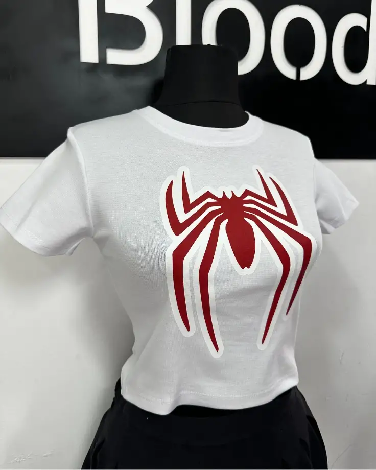 Cesur, ikonik ve stil sahibi! Ön kısmında yer alan kırmızı örümcek (spider) logosu ile dikkatleri üzerine çeken bu beyaz crop top, sokak stilini bir üst seviyeye taşıyor. Yumuşak dokusu ve vücuda oturan kesimi sayesinde hem şık hem de ultra konforlu. Marvel evreninden ilham alan bu parça, casual kombinlerine dinamik bir hava katmak için birebir.