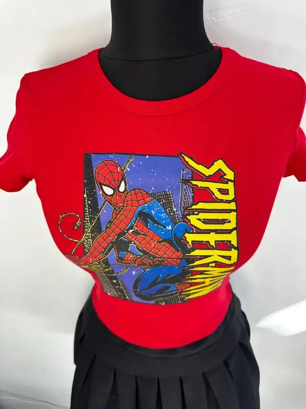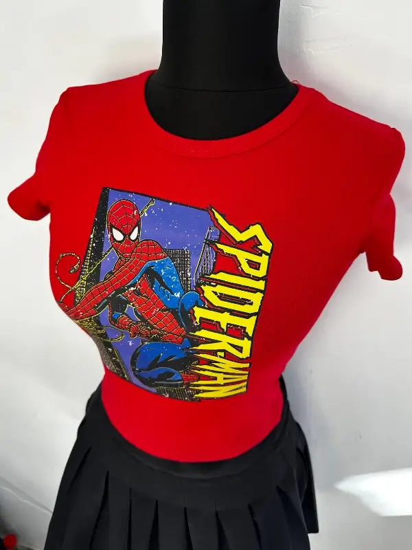 Bu canlı kırmızı crop top, retro çizgi roman tarzında tasarlanmış süper kahraman baskısıyla hem nostaljik hem de dinamik bir hava taşıyor. Özgün ve cesur görünümüyle ister günlük stilinde ister özel kombinlerinde yıldız parça olmaya aday!