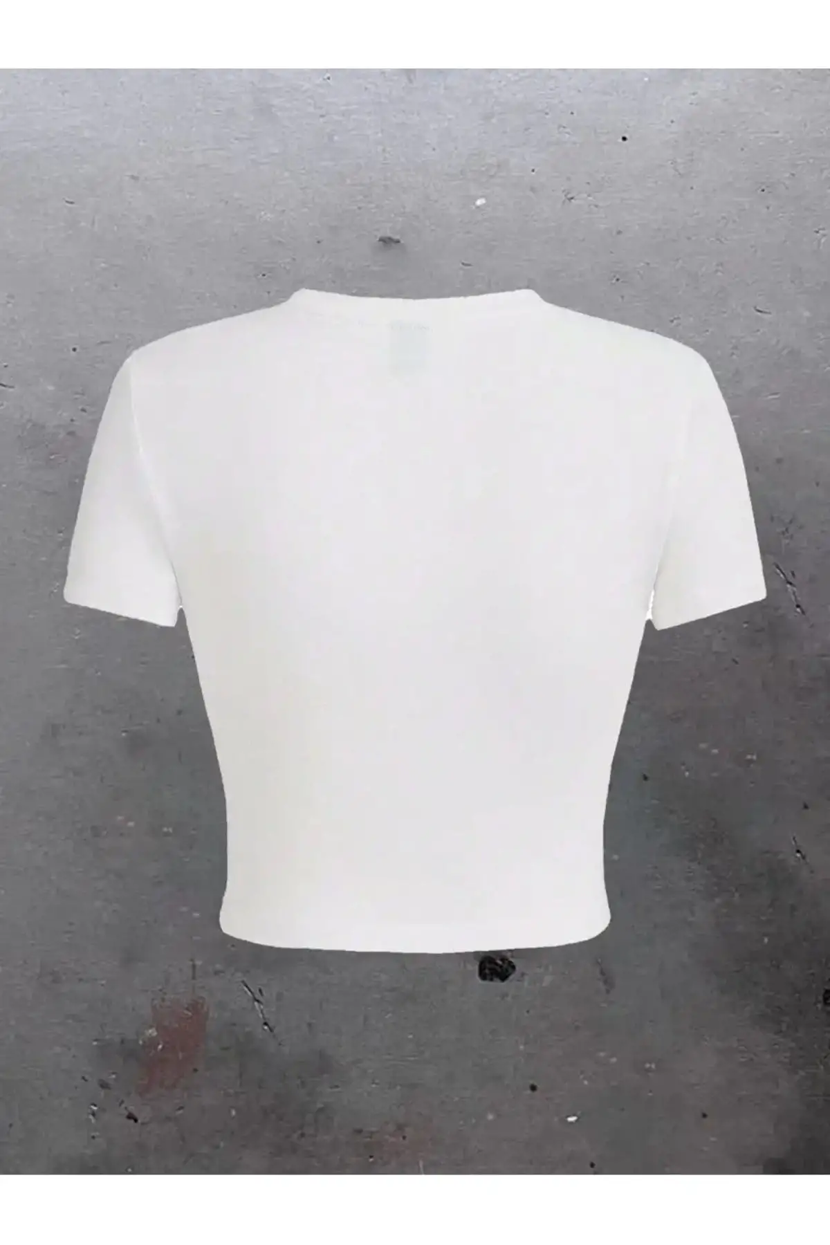 Beyaz Gothic Creeper Yaka Ek Askılı Kısa Kollu Full Body Crop