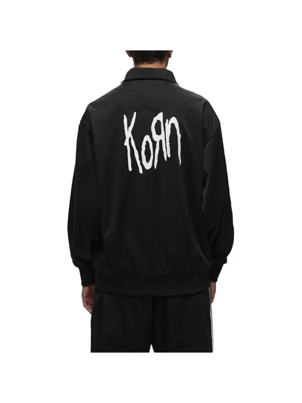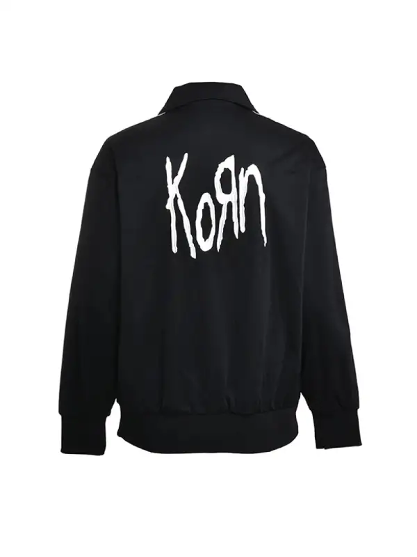 Korn Nakışlı Logolu Çizgili Siyah Ceket