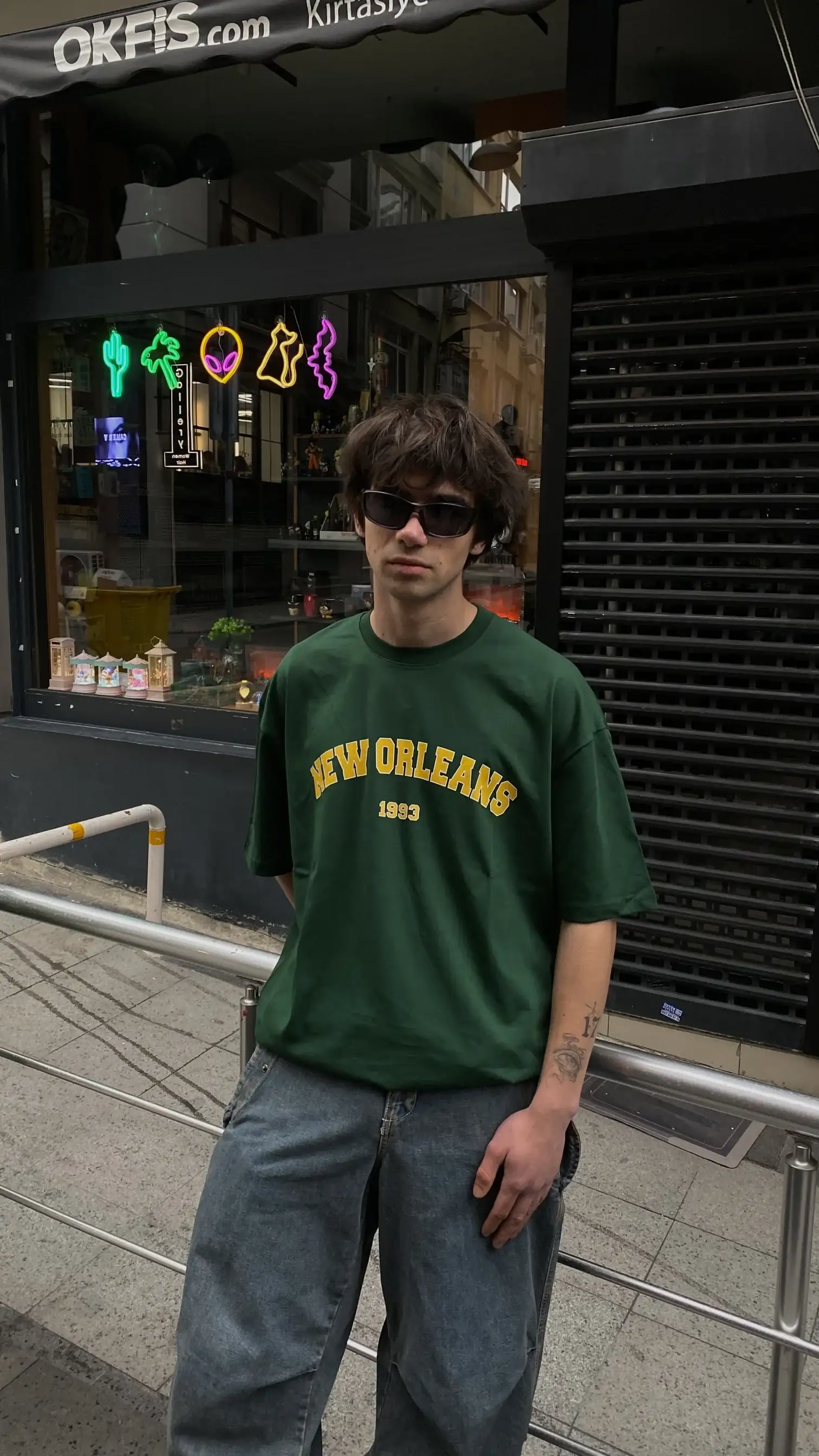 Koyu Yeşil New Orleans Oversize Tişört