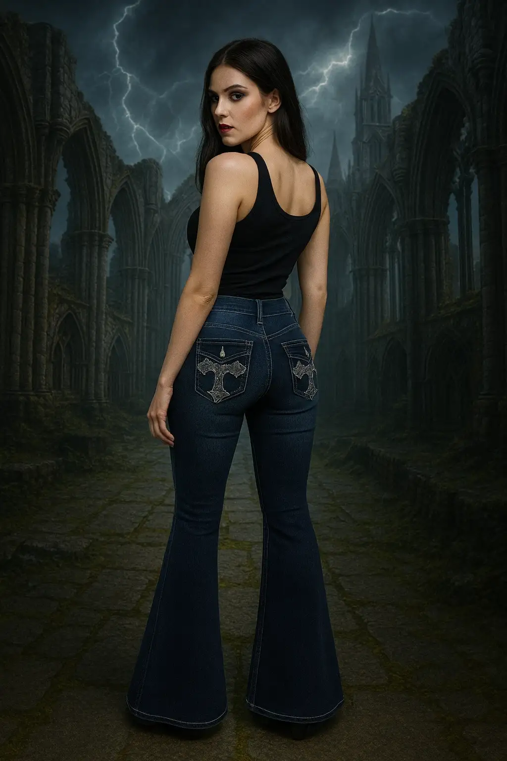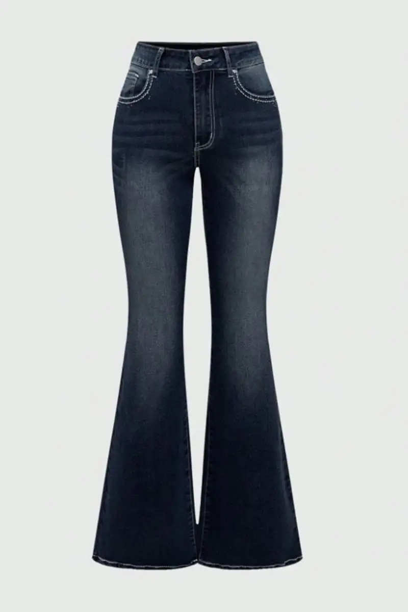 Lacivert Cross Yıkamalı İspanyol Paça Y2K Pantolon