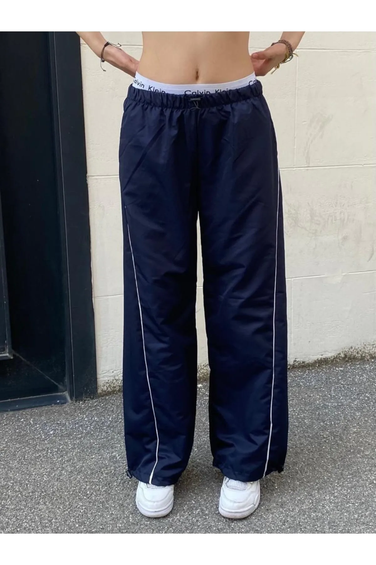 Lacivert Paraşüt Kumaş Çizgi Detay Eşofman