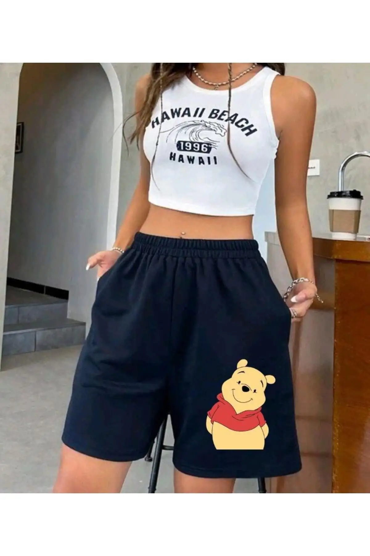 Lacivert winnie the pooh Detaylı Şort