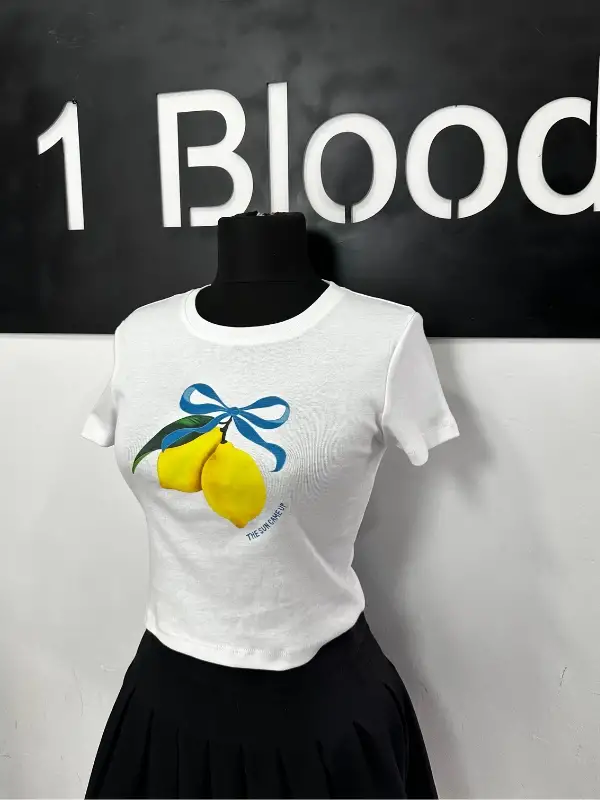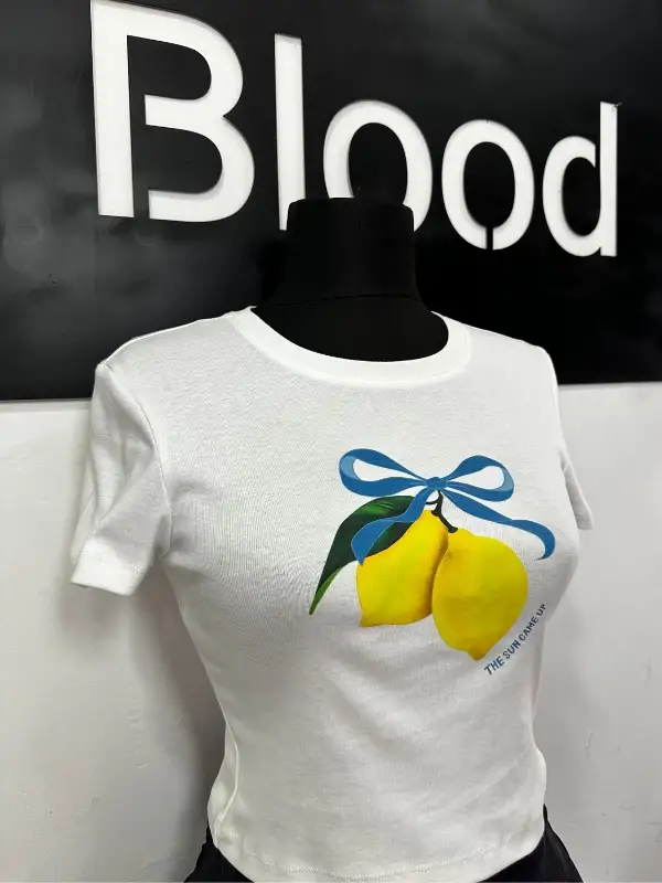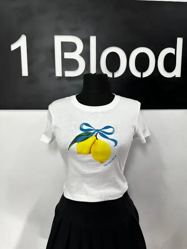 Tatlı mı tatlı limon deseniyle bu crop top, hem ferah hem de göz alıcı. Yumuşak kumaşı ve eğlenceli baskısıyla sahil yürüyüşlerinden yaz partilerine kadar her ortamda seninle.