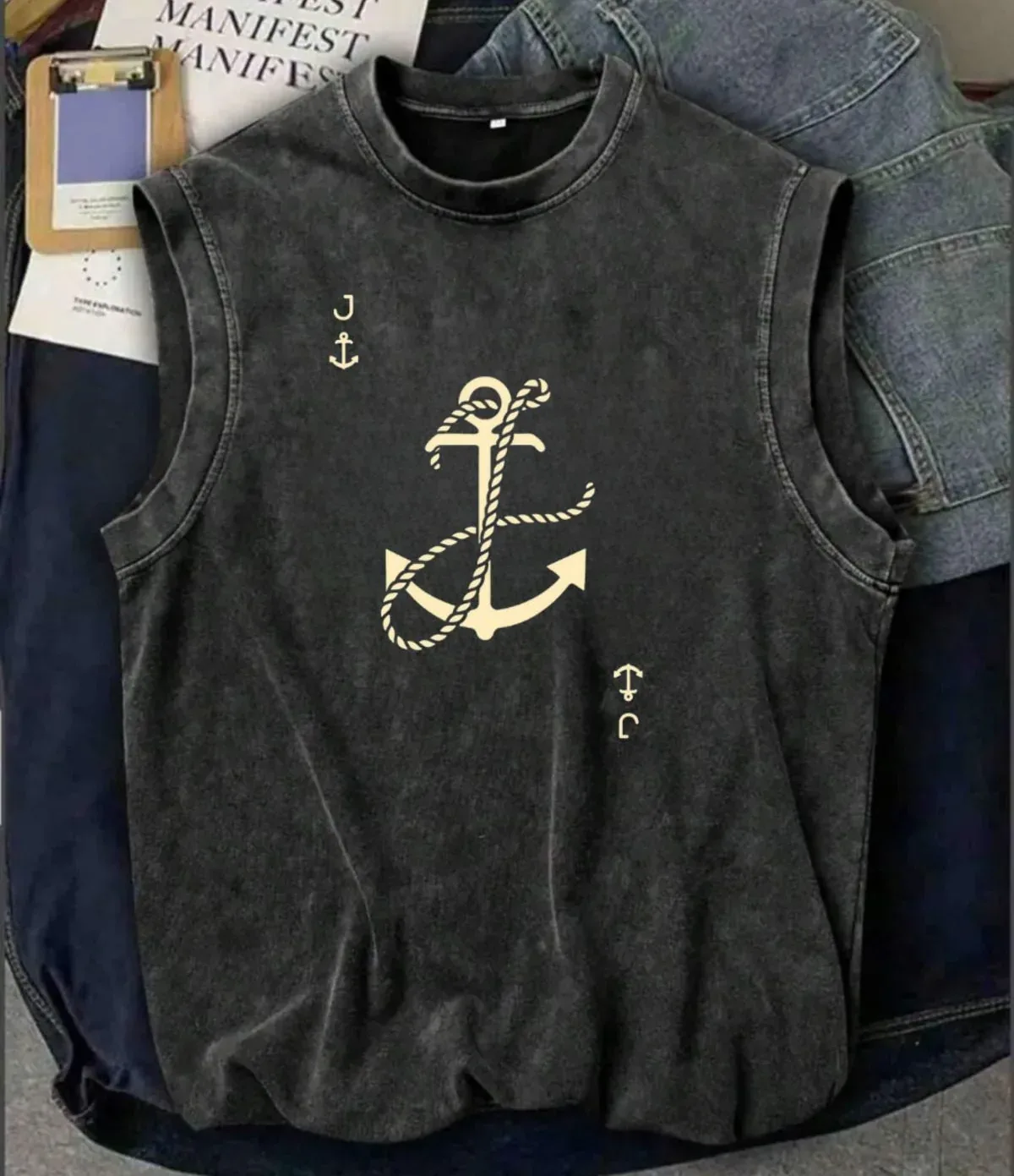 Holiday Line Anchor Kolsuz Atlet Bisiklet Yaka Yıkamalı Vintage Unisex Oversize T-Shirt
