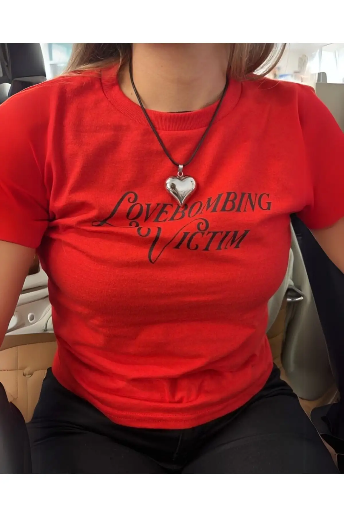 Love Bombing Baskılı Kırmızı Crop Bluz