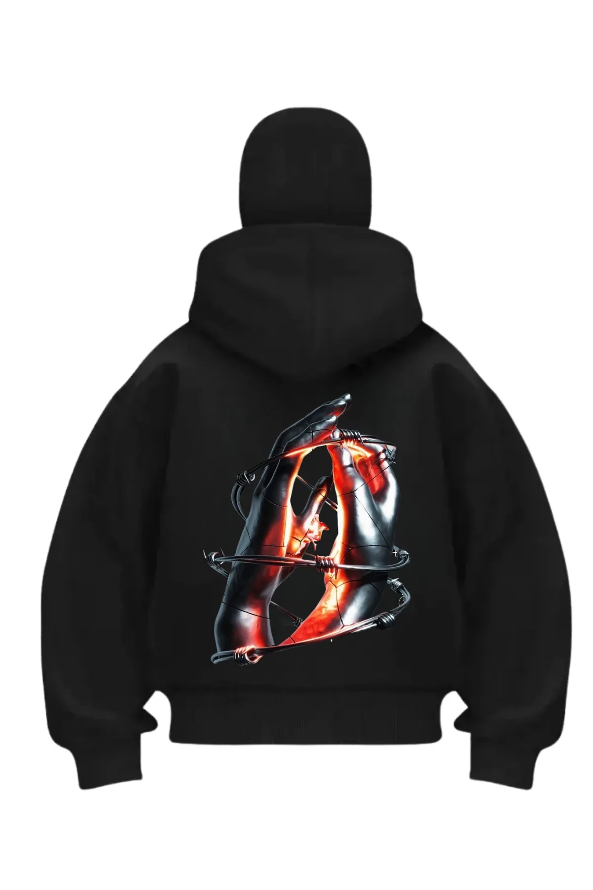 Love Hands Baskılı Siyah Samuray Kar Maske Sweatshirt Hırka