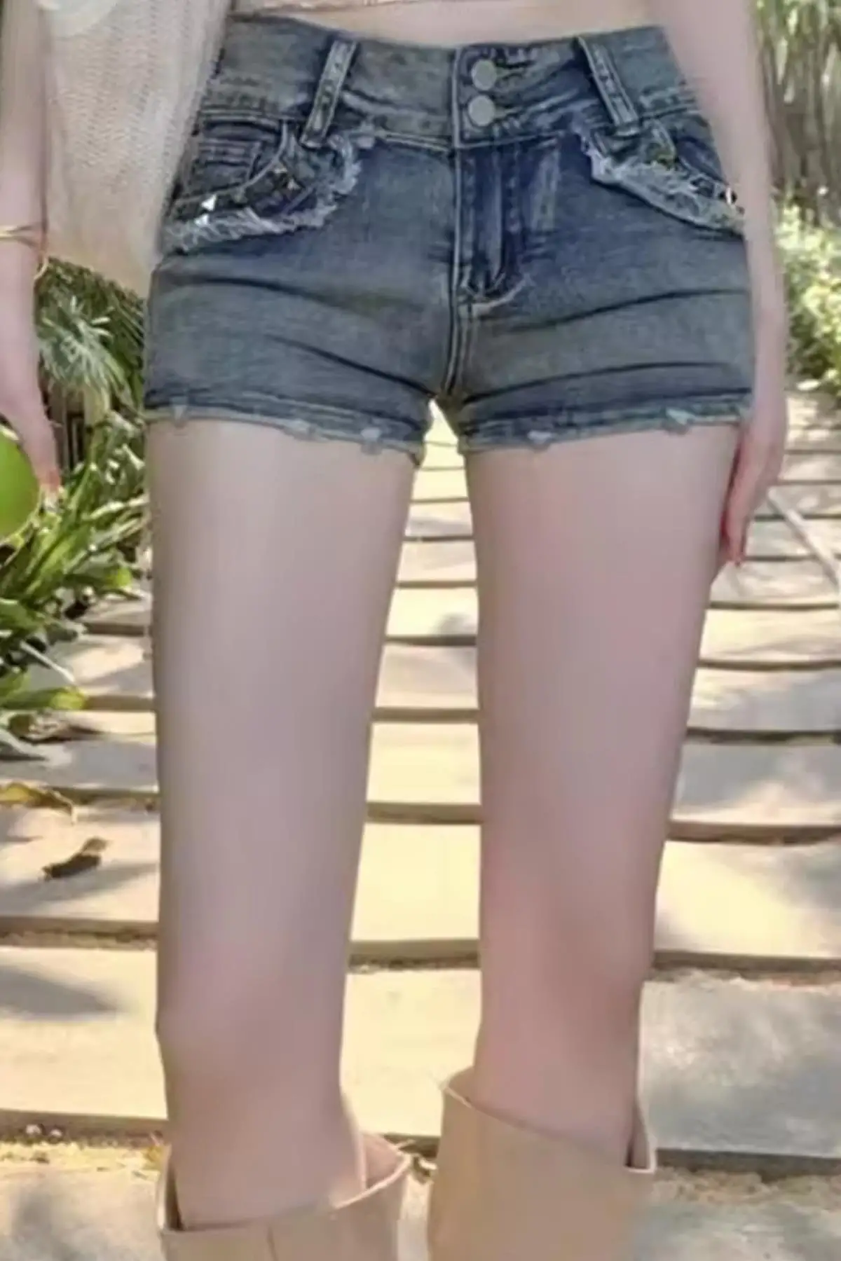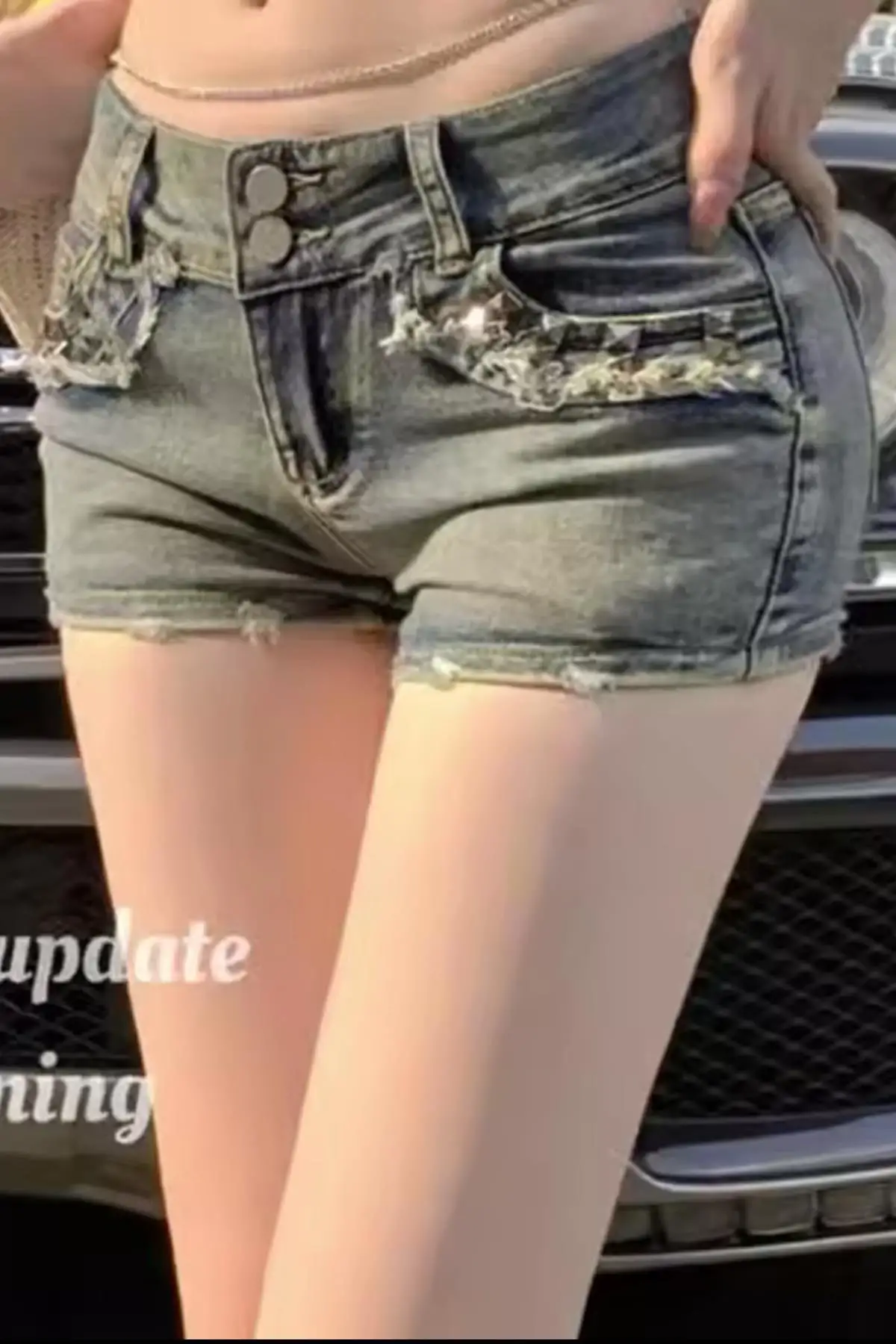 Mavi Eskitme Piramit Detay Kot Şort