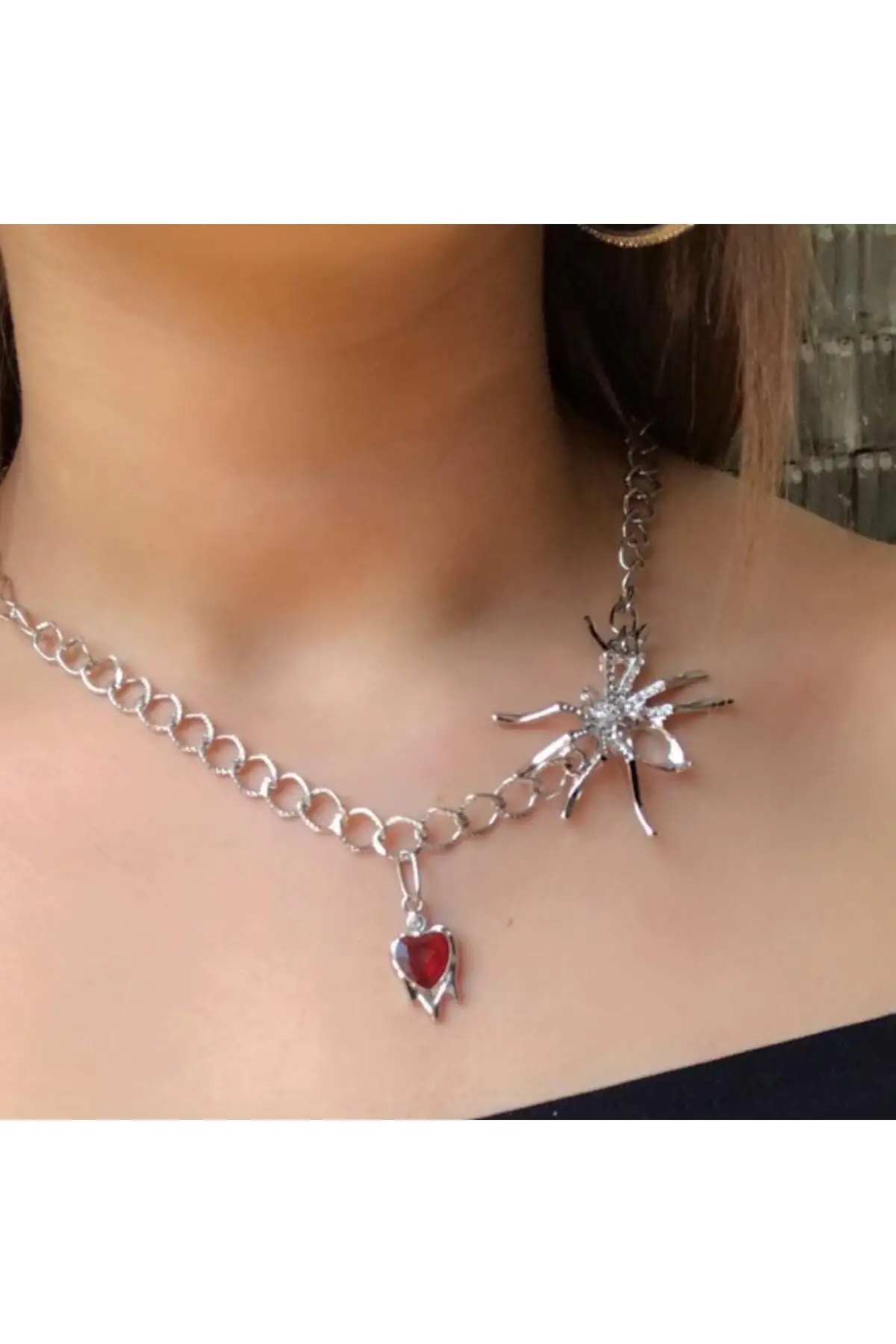 Melt Heart With Spider Silver Kolye