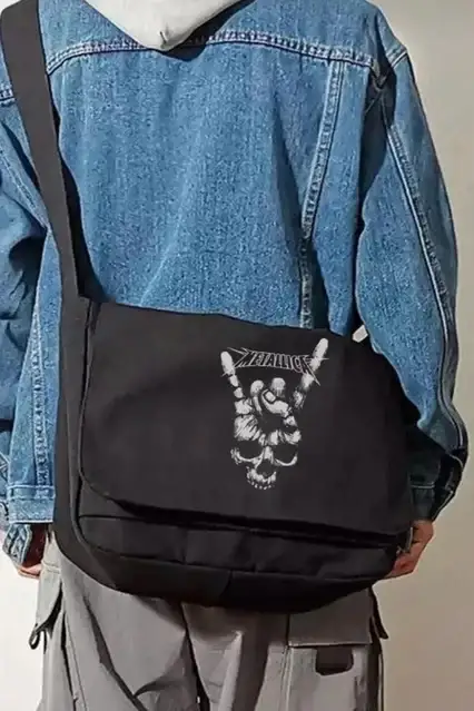 Rock Serisi Slipknot Baskılı Unisex Siyah Postacı Çantası