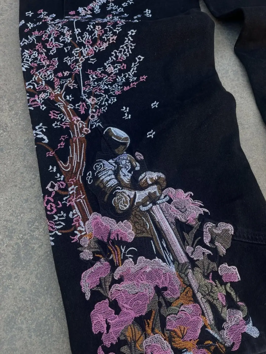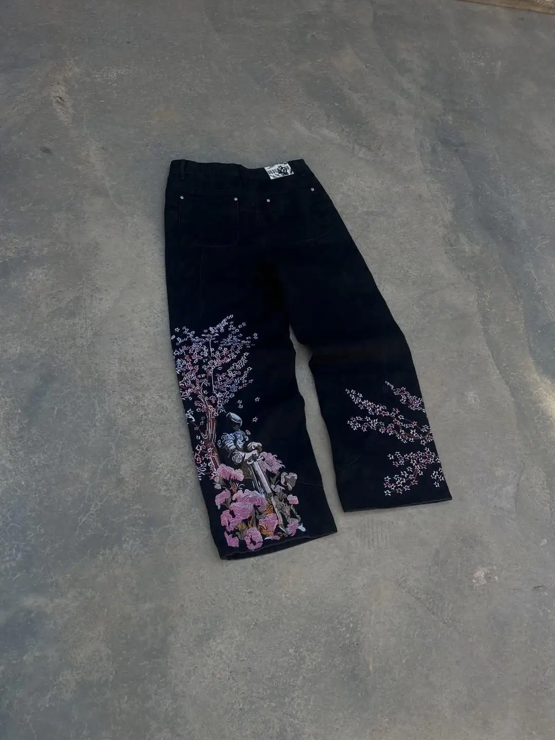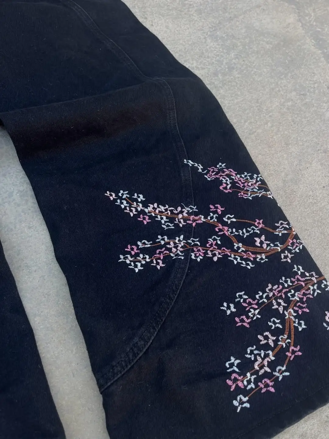 Midnight Blossom Nakışlı Wide Leg Jean
