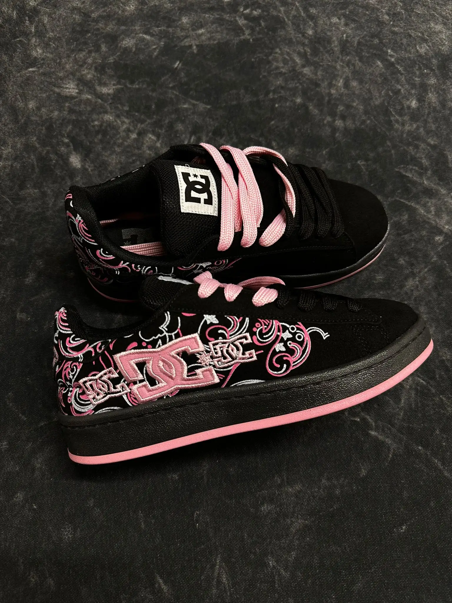 Midnight DC Siyah Pembe Spor Ayakkabı modern sokak stilini konforla buluşturan dikkat çekici bir tasarıma sahiptir. Siyah ana gövde üzerine yerleştirilen pembe detaylar ayakkabıya güçlü ve enerjik bir görünüm kazandırırken, günlük kombinlerinize stil sahibi bir dokunuş katar.