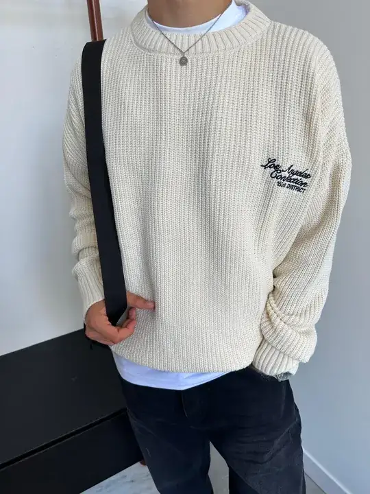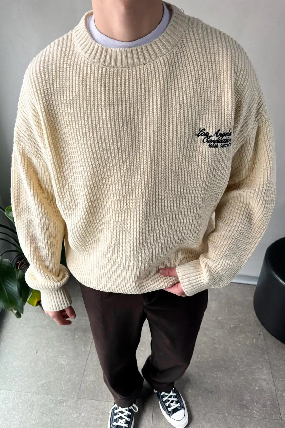 Minimal Nakışlı Bej Bisiklet Yaka Kazak