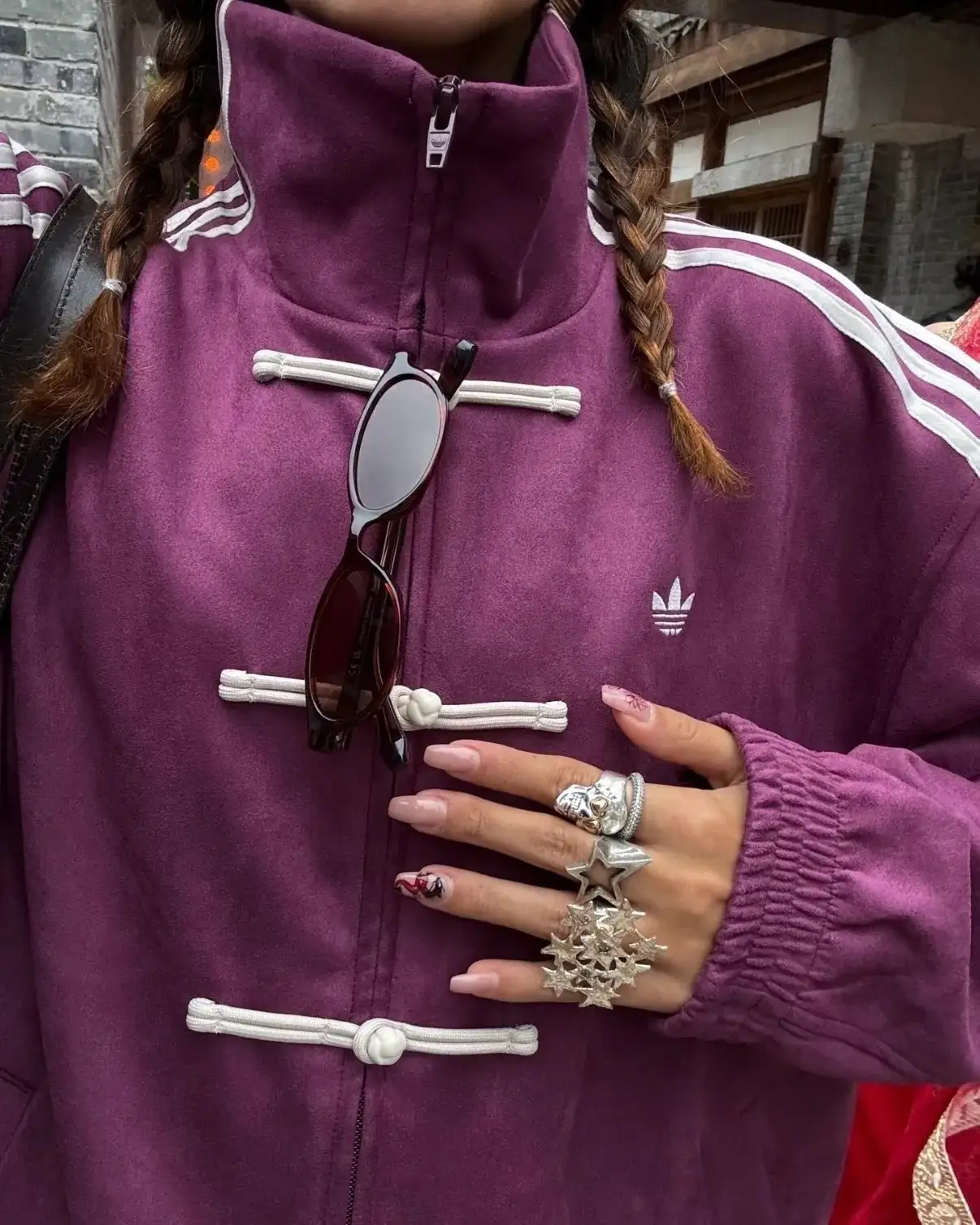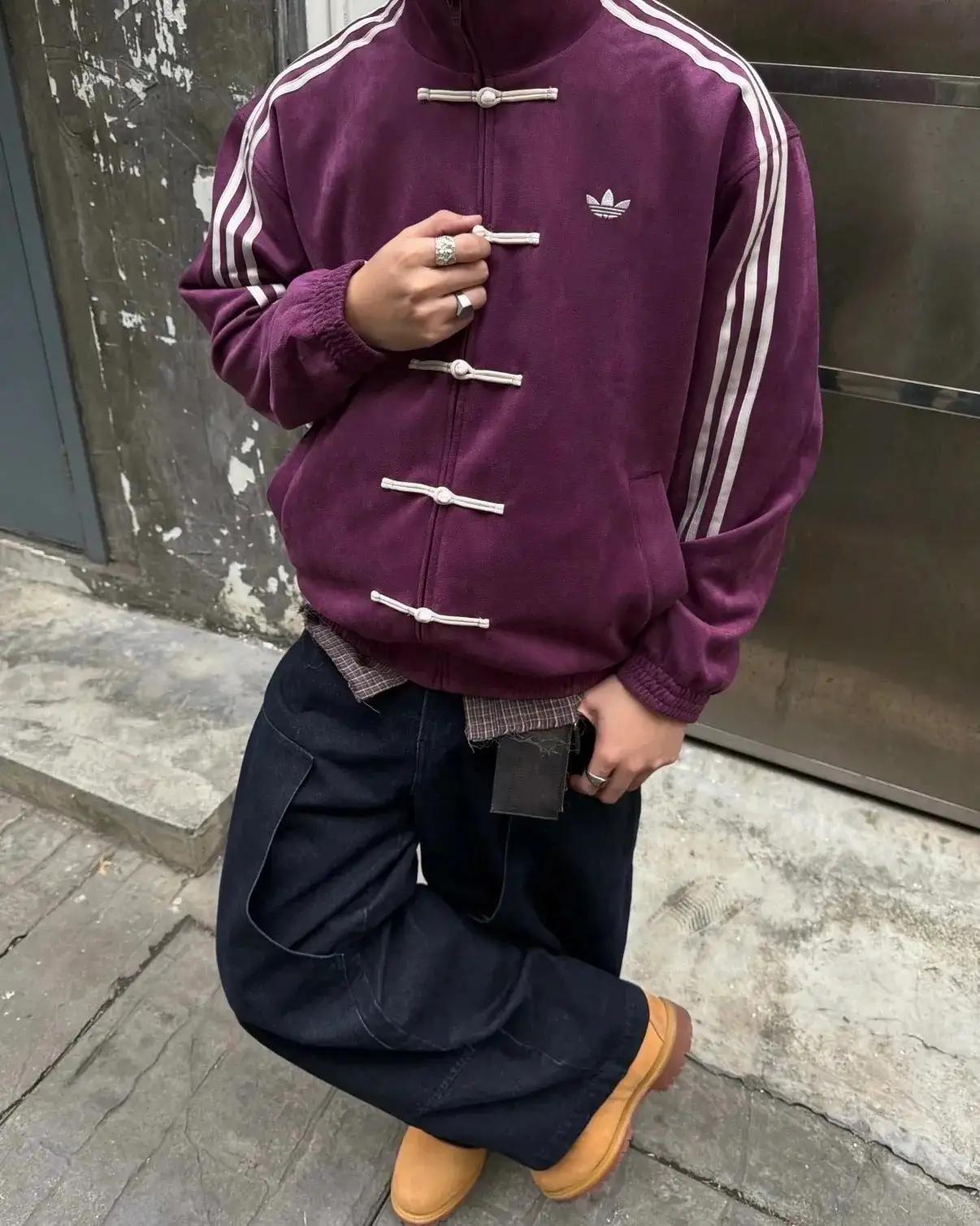 Mor Çizgili Retro Armor Oversize Unisex Ceket