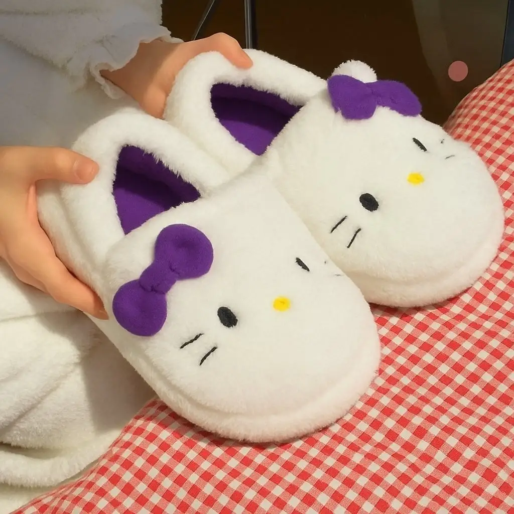 Mor Hello Kitty Yumuşak Tüylü Peluş Panduf Terlik