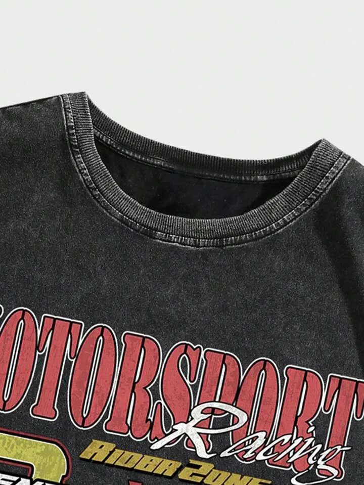 MotorSport Baskılı Unisex Oversize Yıkamalı Atlet