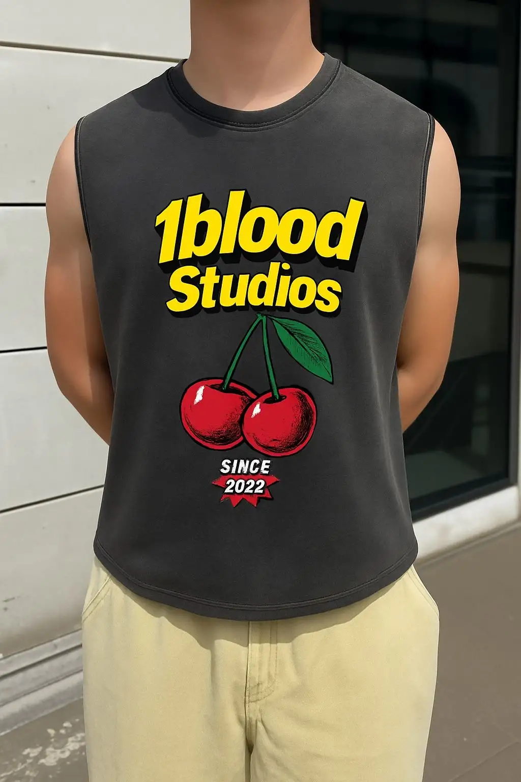CHERRY Baskılı Unisex Oversize Yıkamalı Atlet