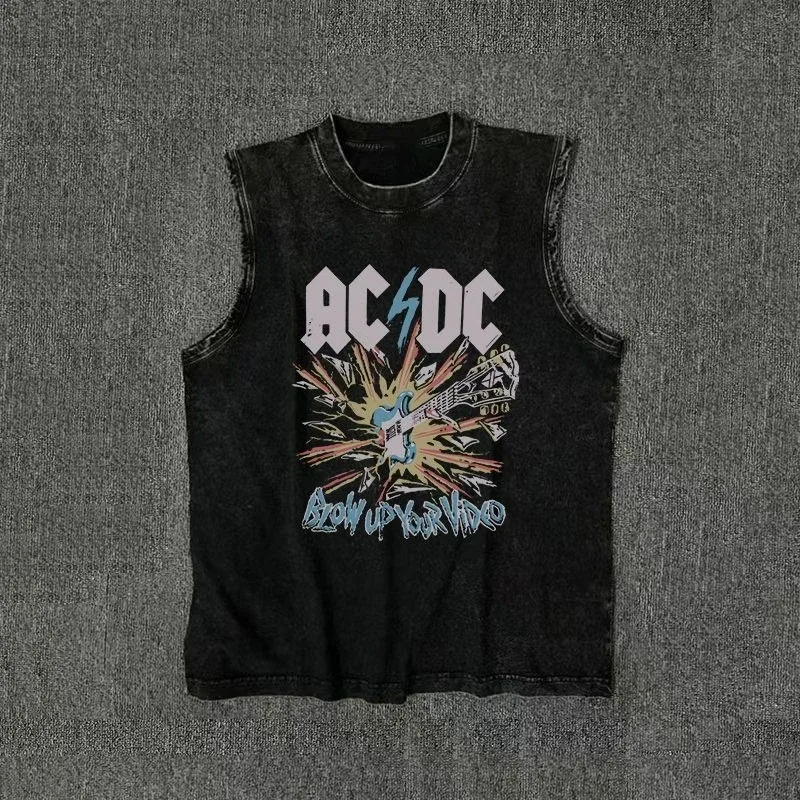 ACDC Yıkanmış Eski Retro Atlet Bisiklet Yaka Yıkamalı Vintage Unisex Oversize