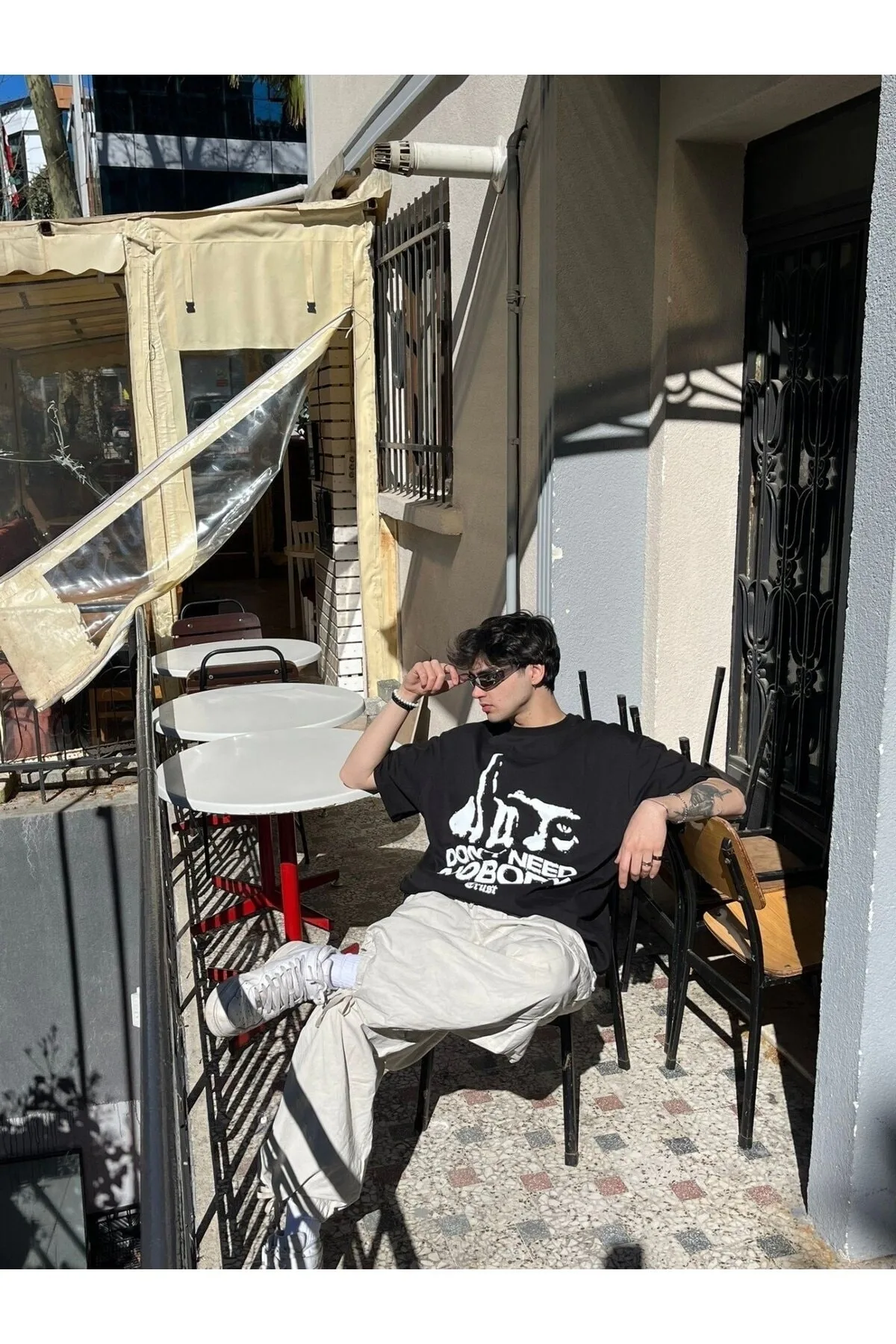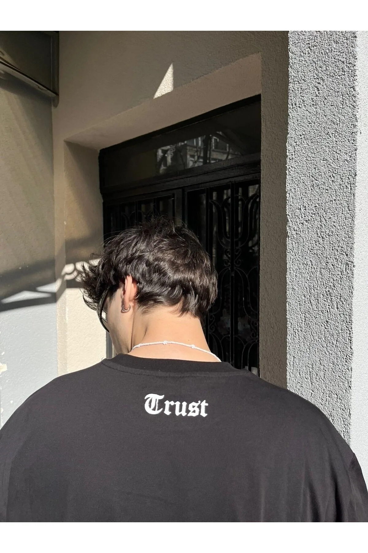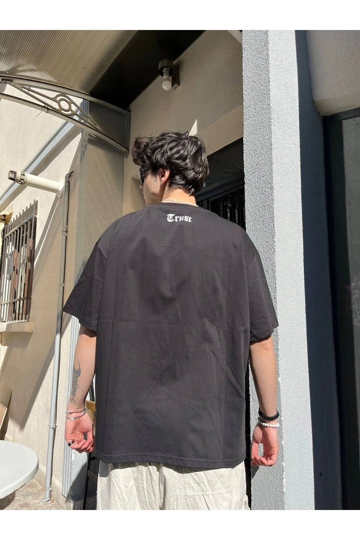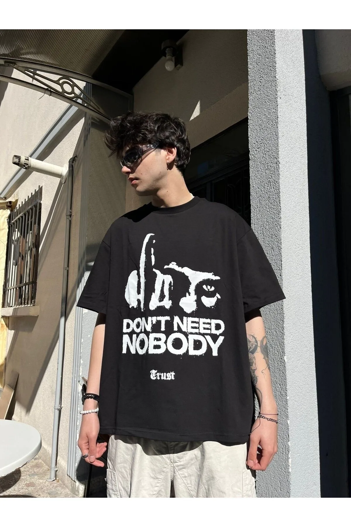NOBODY TRUST BASKILI SİYAH OVERSİZE TSHİRT
