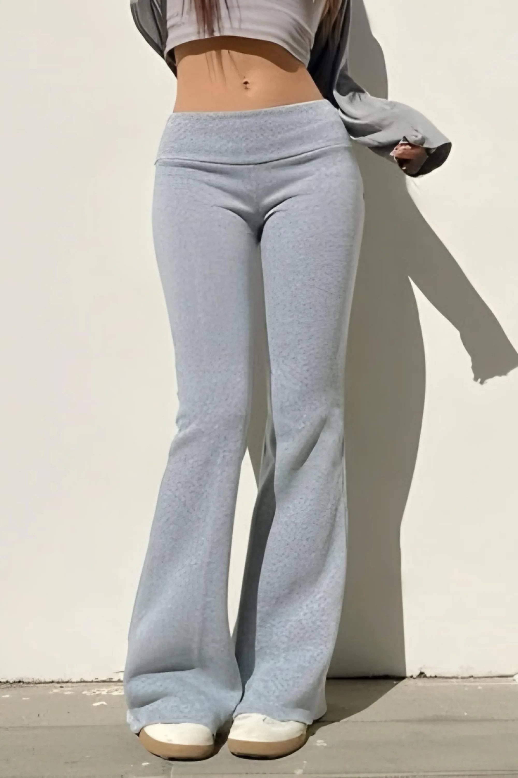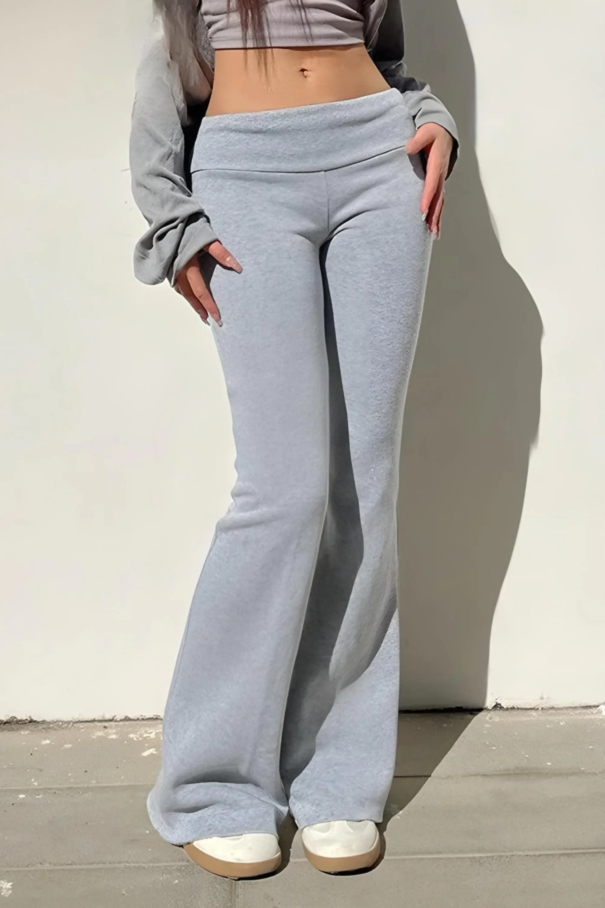 Normal Bel Gri Ispanyol Paça Pantolon Flare Pantalon Beli Lastikli