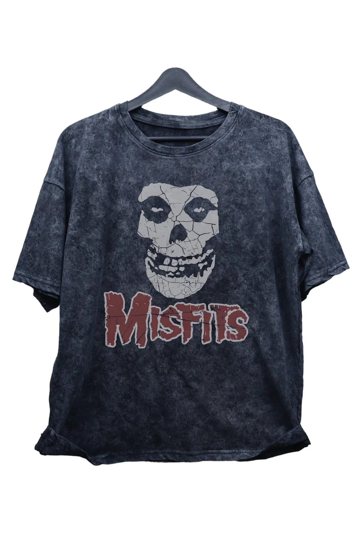 Oversize Misfits Yazılı Yıkamalı T-Shirt, Unisex Rock Metal Müzik Baskılı Retro Tişört