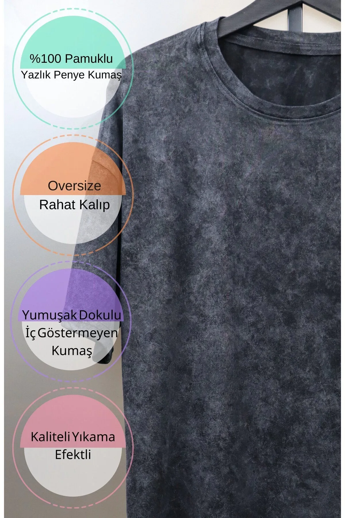 Siyah Acid Wash Aplike Nakışlı Oversize Premium Sweatshirt