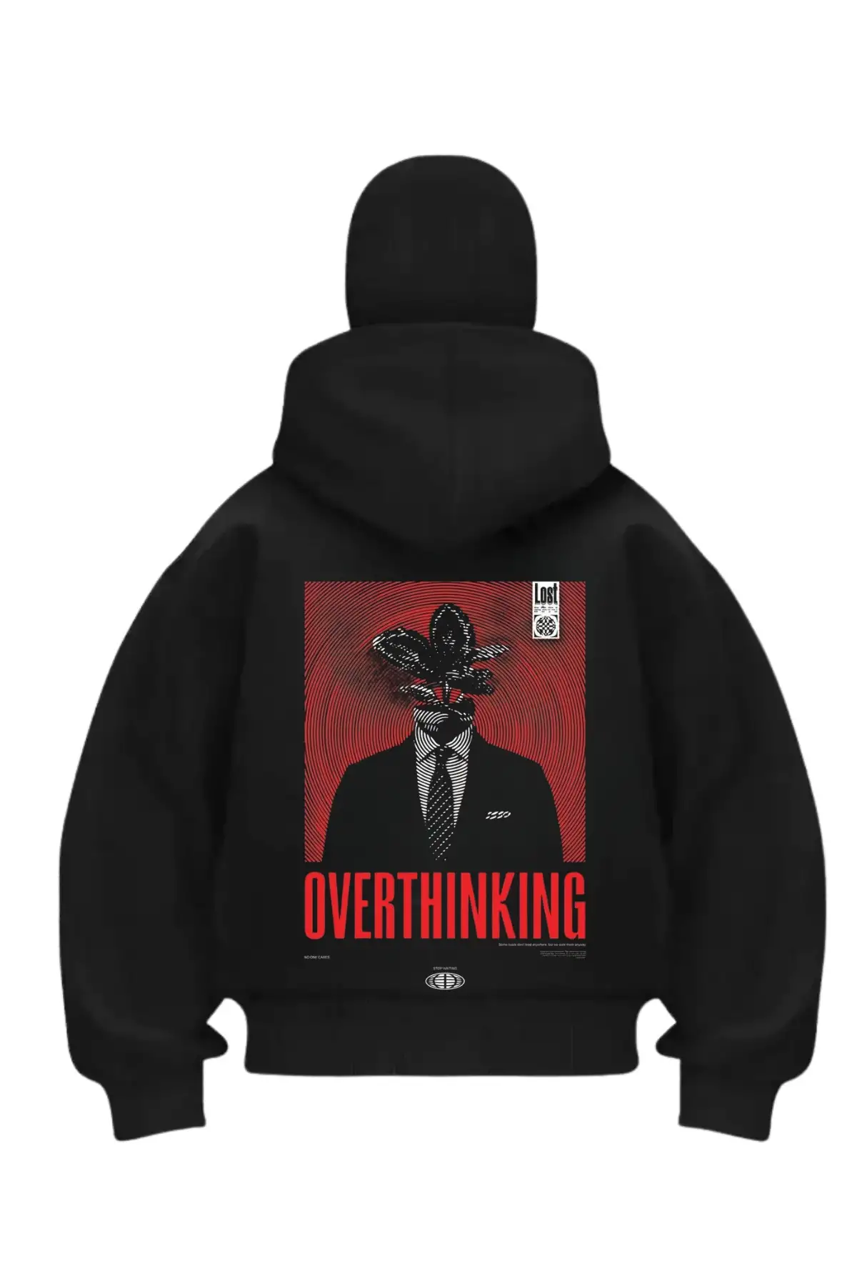 Overthınkıng Baskılı Siyah Samuray Kar Maske Sweatshirt Hırka
