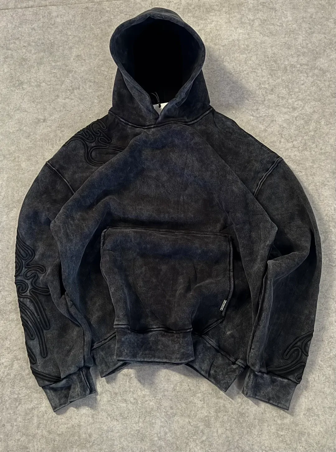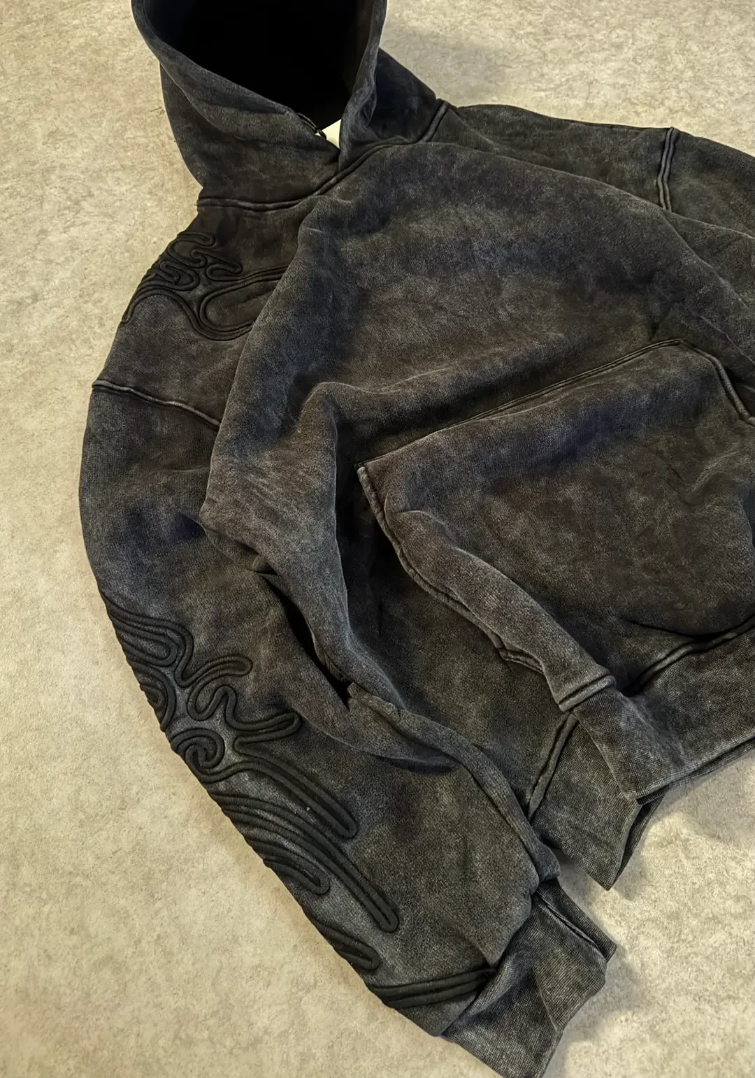 Koyu Gri Yıkamalı Wash Göz Nakışlı Oversize Premium Sweatshirt