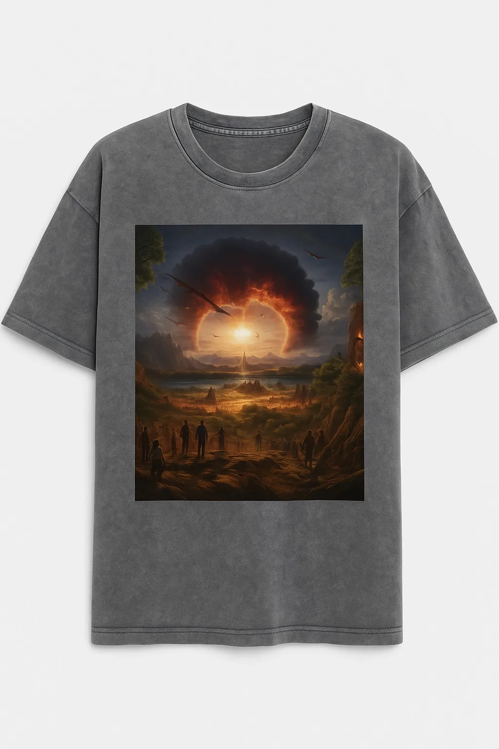 Beyaz Revenge Kırmızı Taş Baskılı Oversize Unisex T-shirt