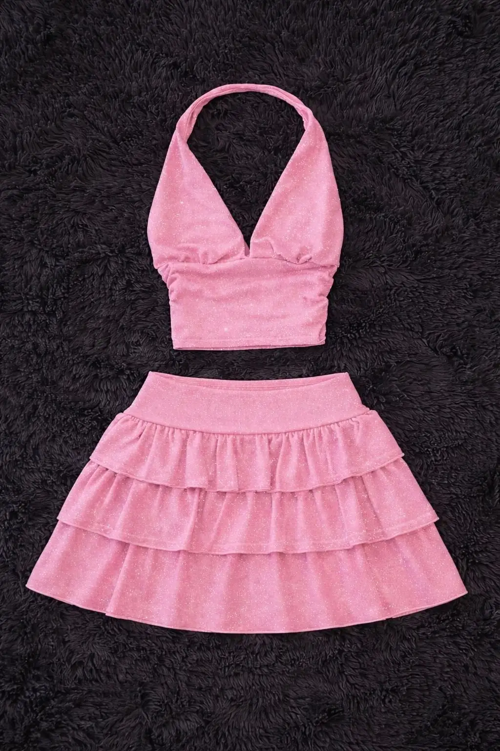 Pembe Ashley Sim Detaylı Şort Etek Bluz Takım