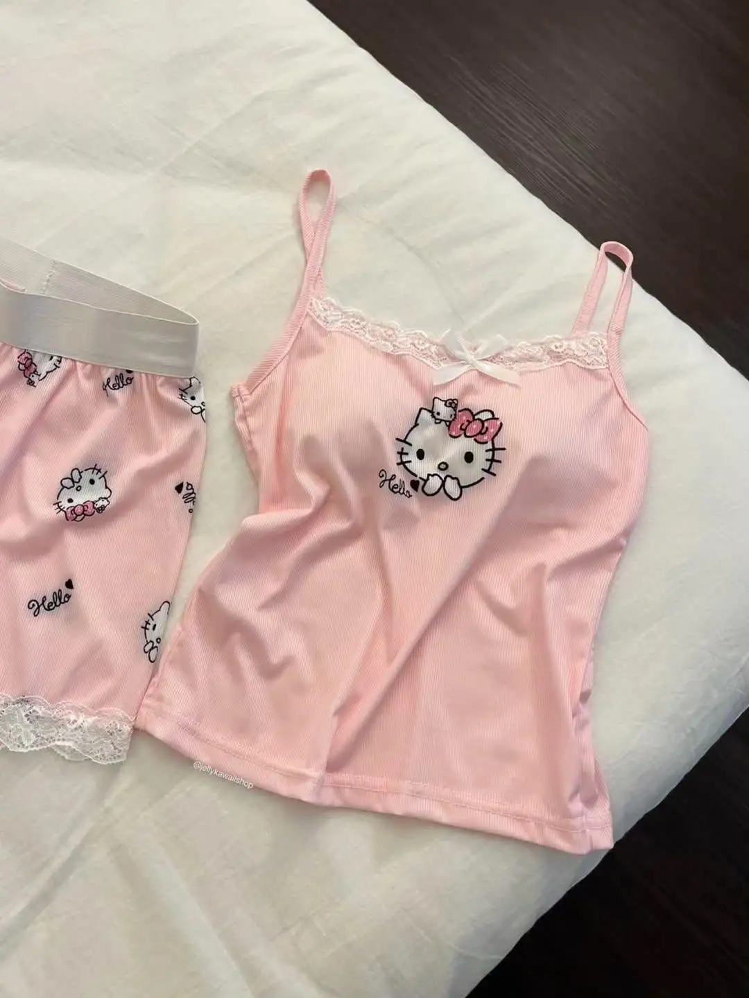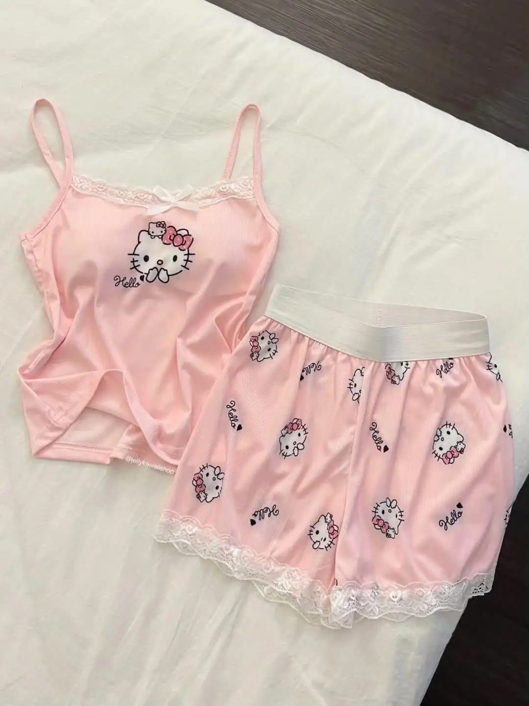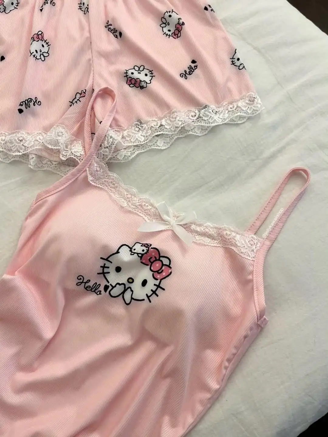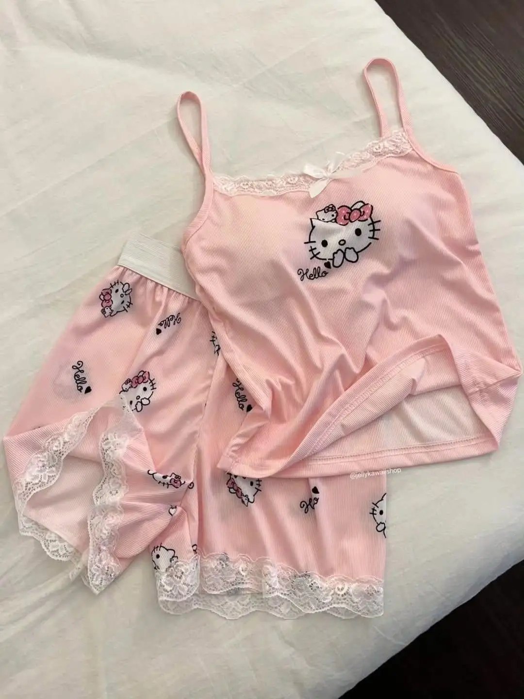 Pembe Hello Kitty Dantel Detaylı Alt Üst Takım