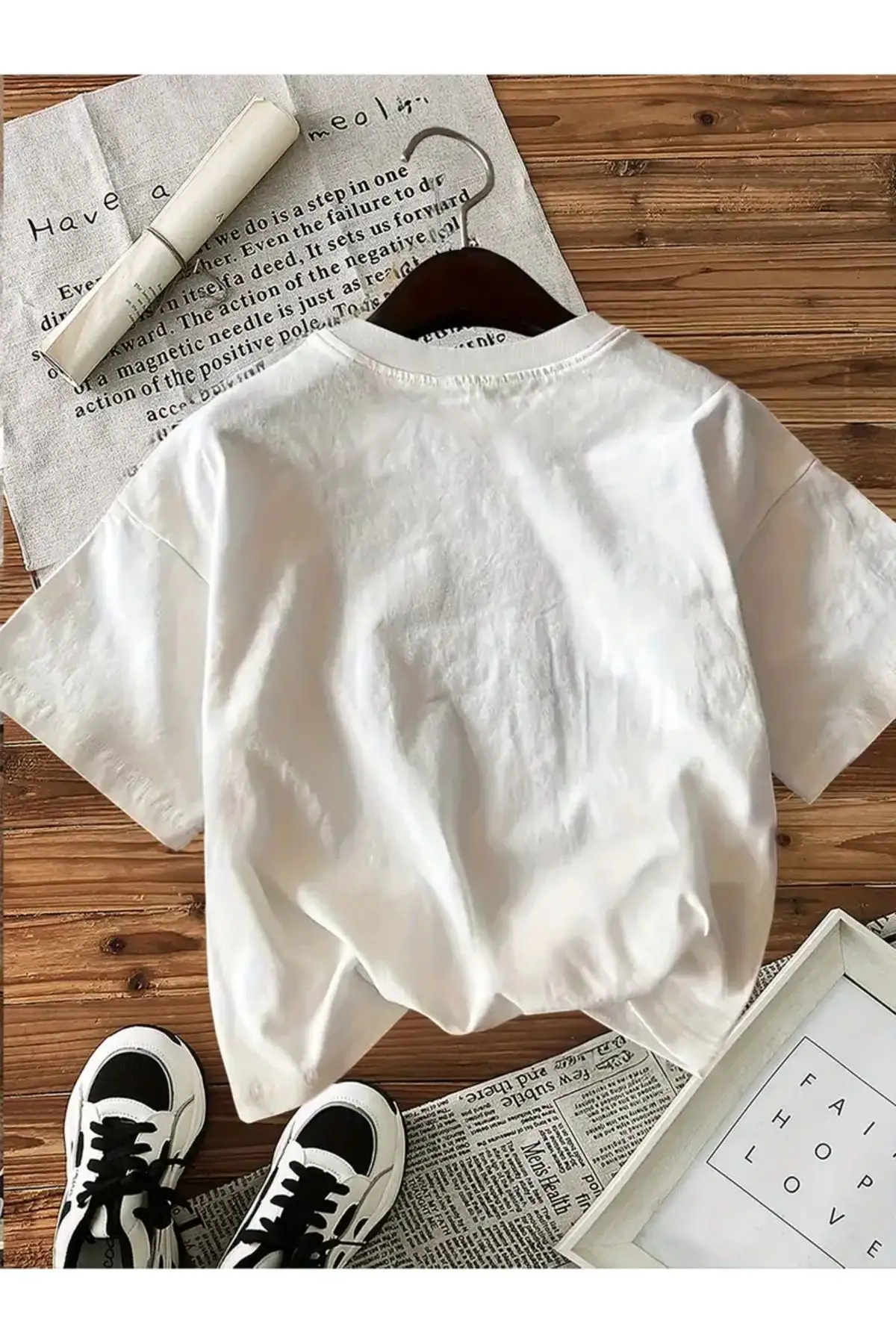 Çizgili Flower Beyaz Oversize Unisex Ceket