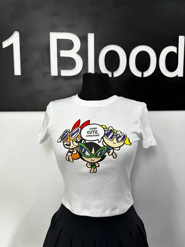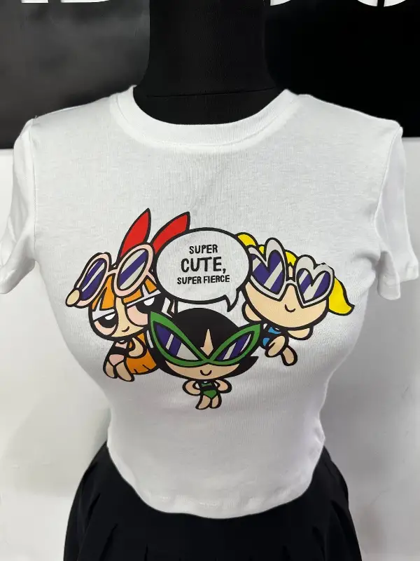 Bu crop top, Blossom, Bubbles ve Buttercup’ın enerjisini stiline taşıyor! Renkli Powerpuff Girls baskısıyla nostalji dolu bir hava katarken, crop kesimiyle tam bir 2000’ler ikonu.