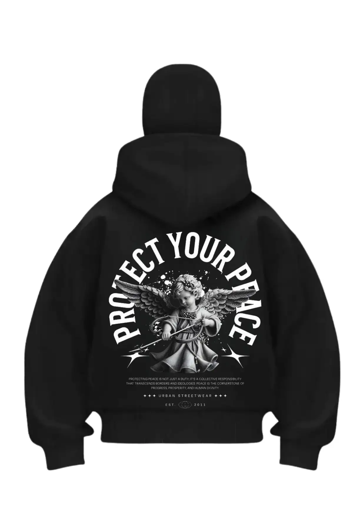 Protect Angel Baskılı Siyah Samuray Kar Maske Sweatshirt Hırka