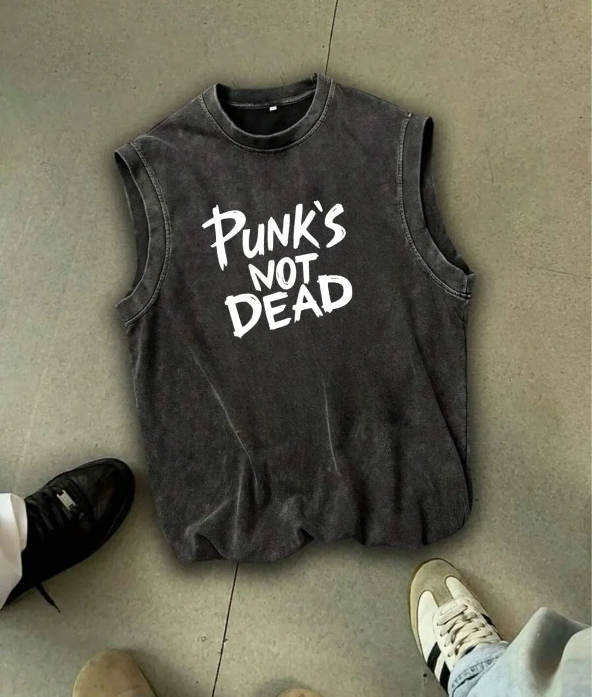 Punk's Not Dead Atlet Bisiklet Yaka Yıkamalı Vintage Unisex Oversize T-Shirt