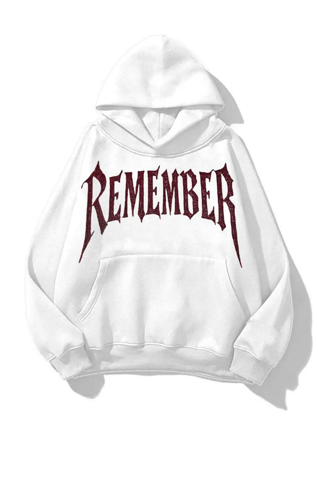 Remember Beyaz Taş Baskılı Oversize Unisex Kapüşonlu Sweat