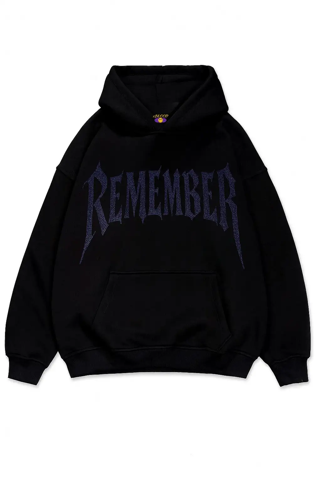 Remember Mavi Taş Baskılı Oversize Unisex Kapüşonlu Sweatshirt