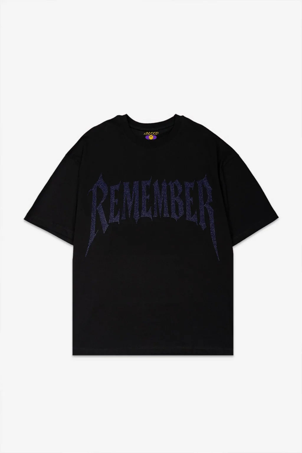 Remember Mavi Taş Baskılı Oversize Unisex T-shirt