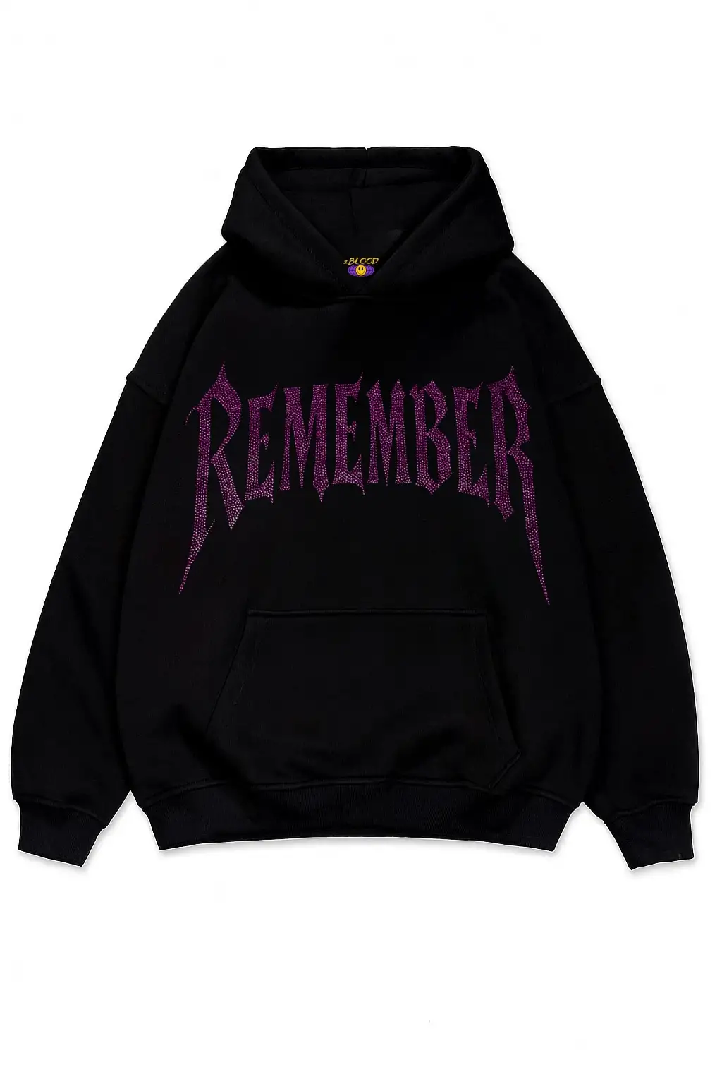 Remember Pembe Taş Baskılı Oversize Unisex Kapüşonlu Sweatshirt