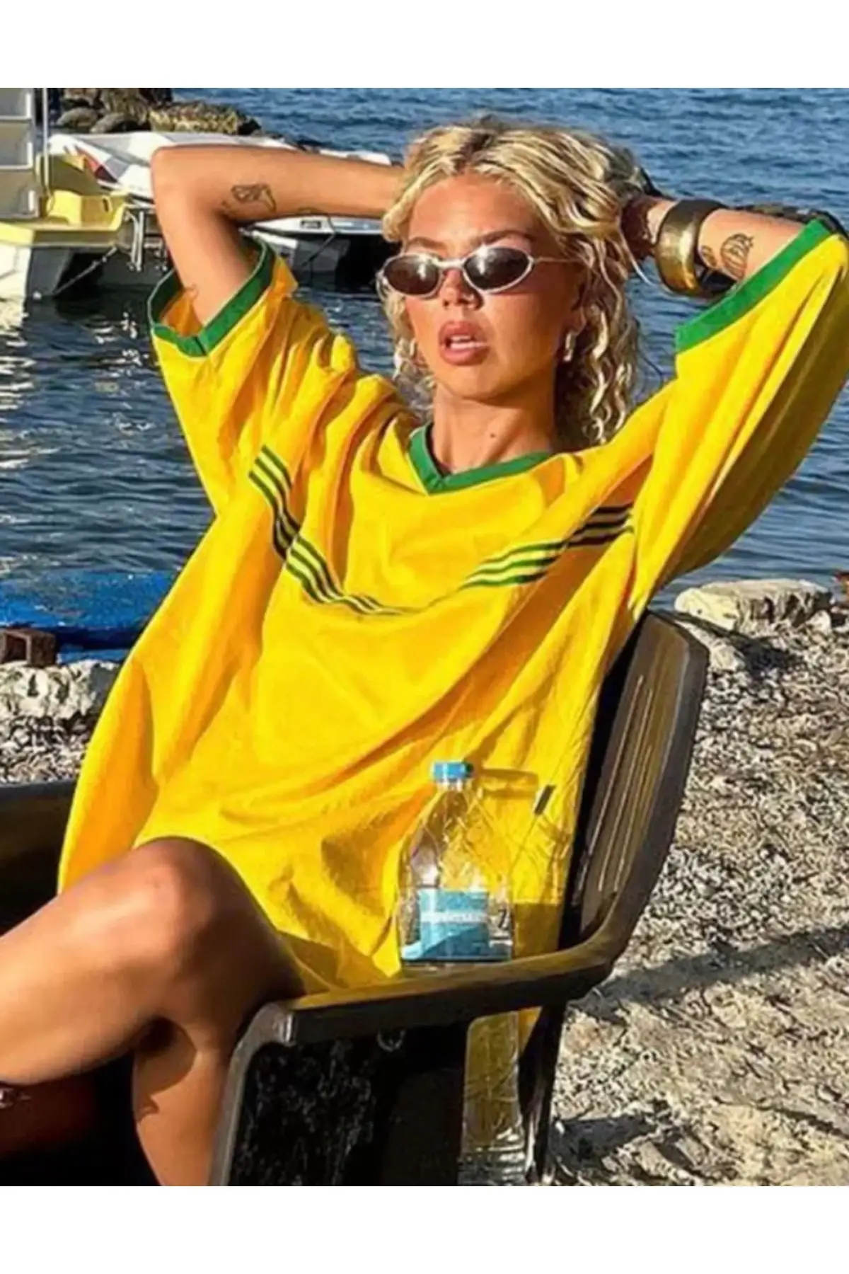 Hardal Sarısı Çizgili Retro Armor Oversize Unisex Ceket