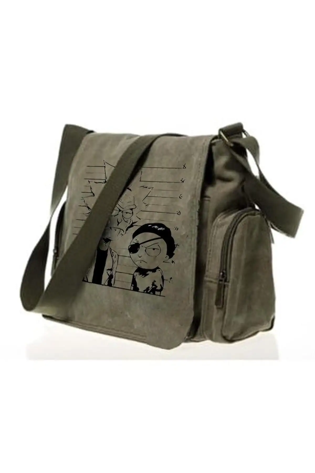 R&M Baskılı Unisex Yeşil Postacı Çantası