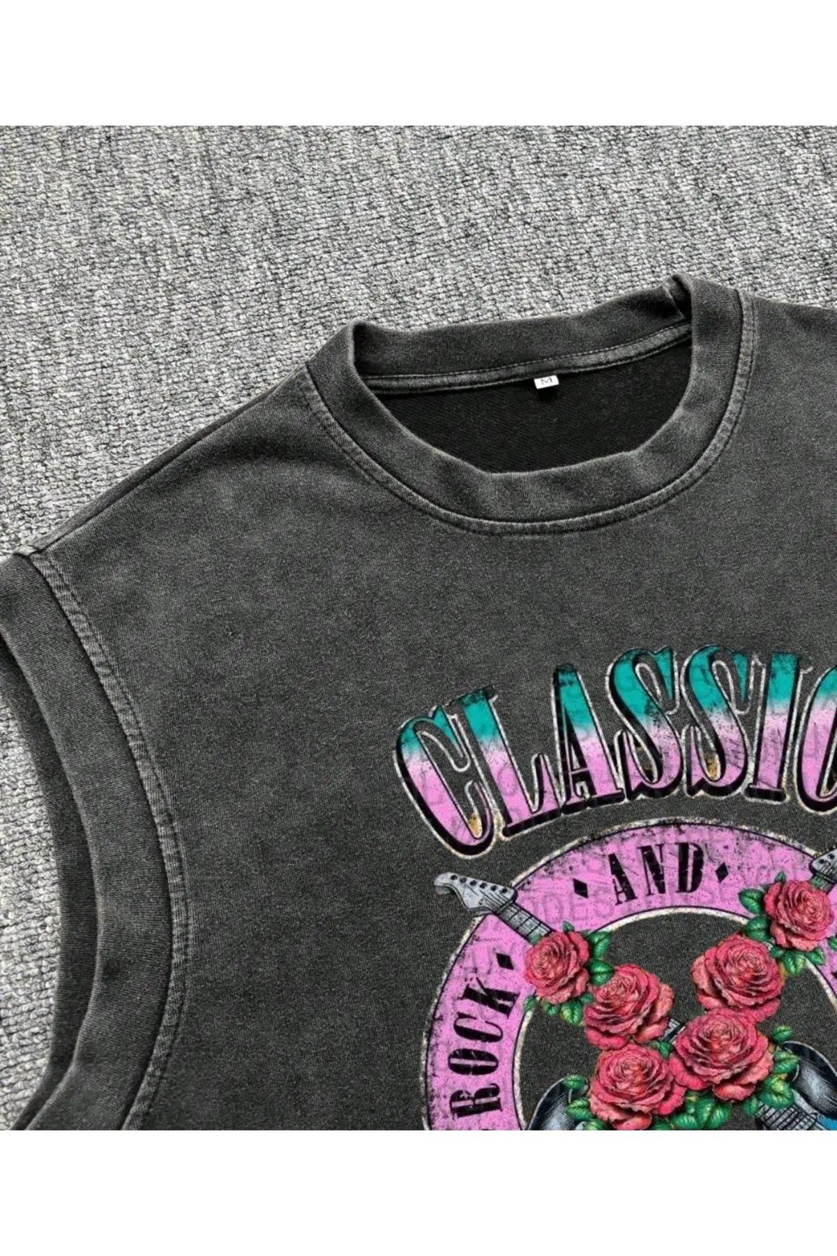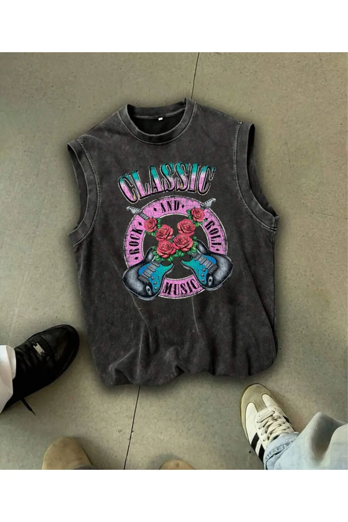 Rock And Roll Kolsuz Atlet Bisiklet Yaka Yıkamalı Vintage Unisex Oversize T-Shirt