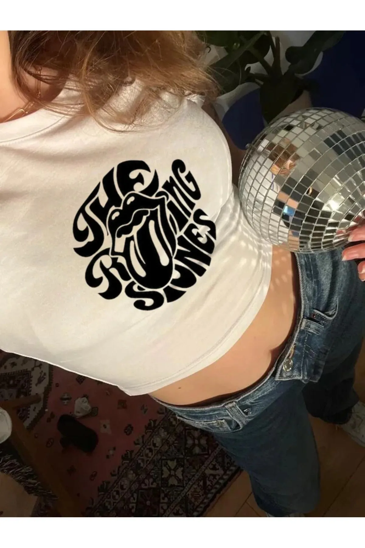 Rolling Stones Desenli Kısa Kollu Crop Body