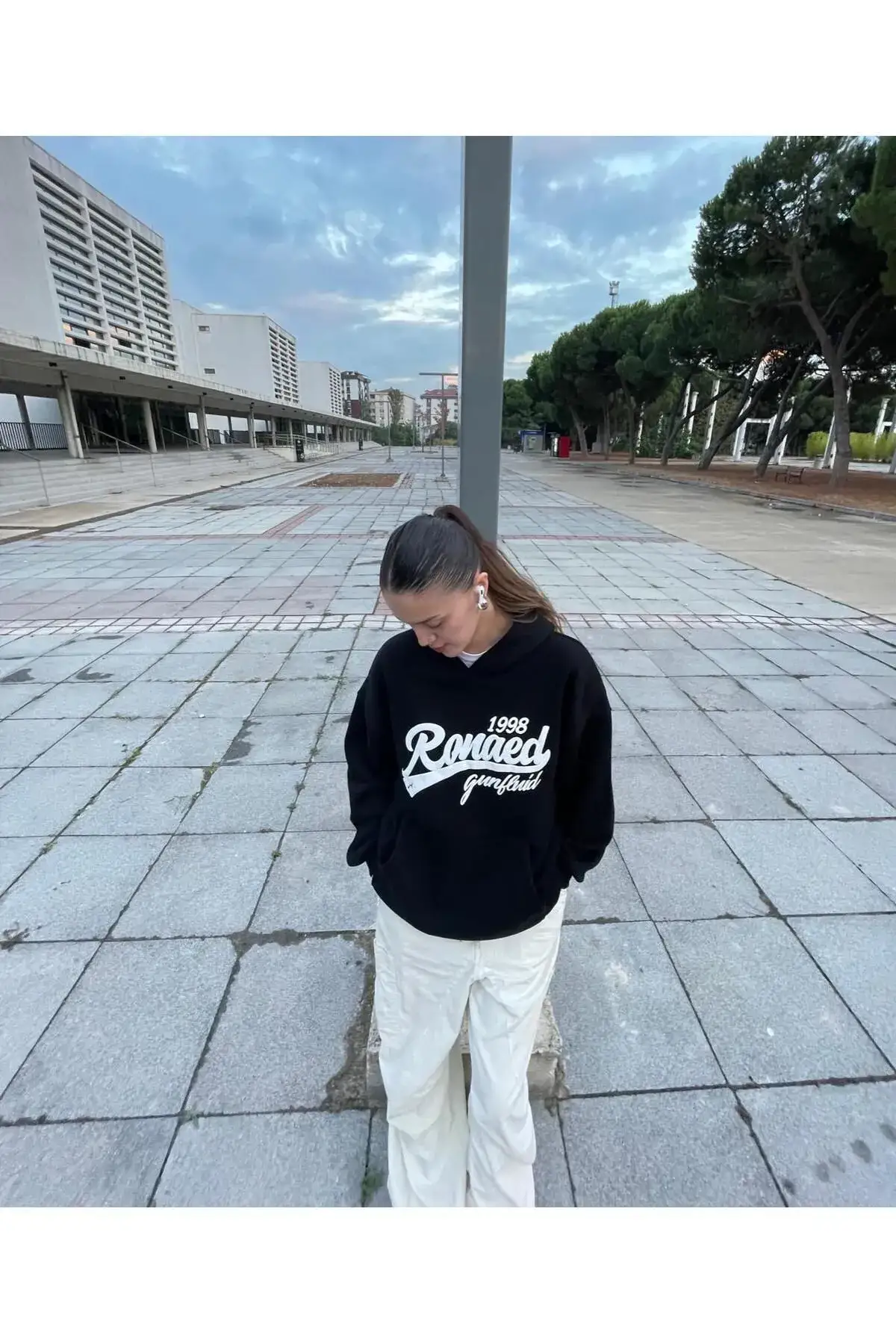 Çizgili Flower Siyah Oversize Unisex Ceket