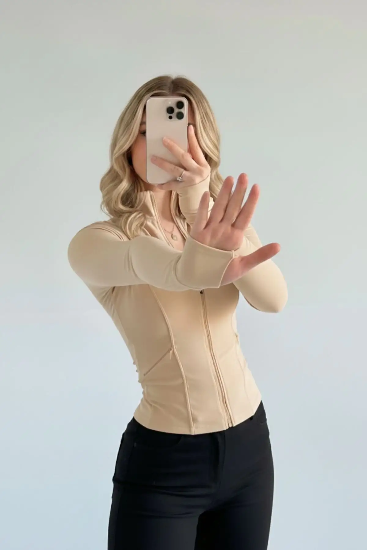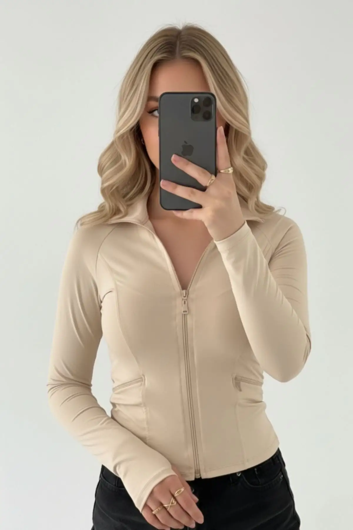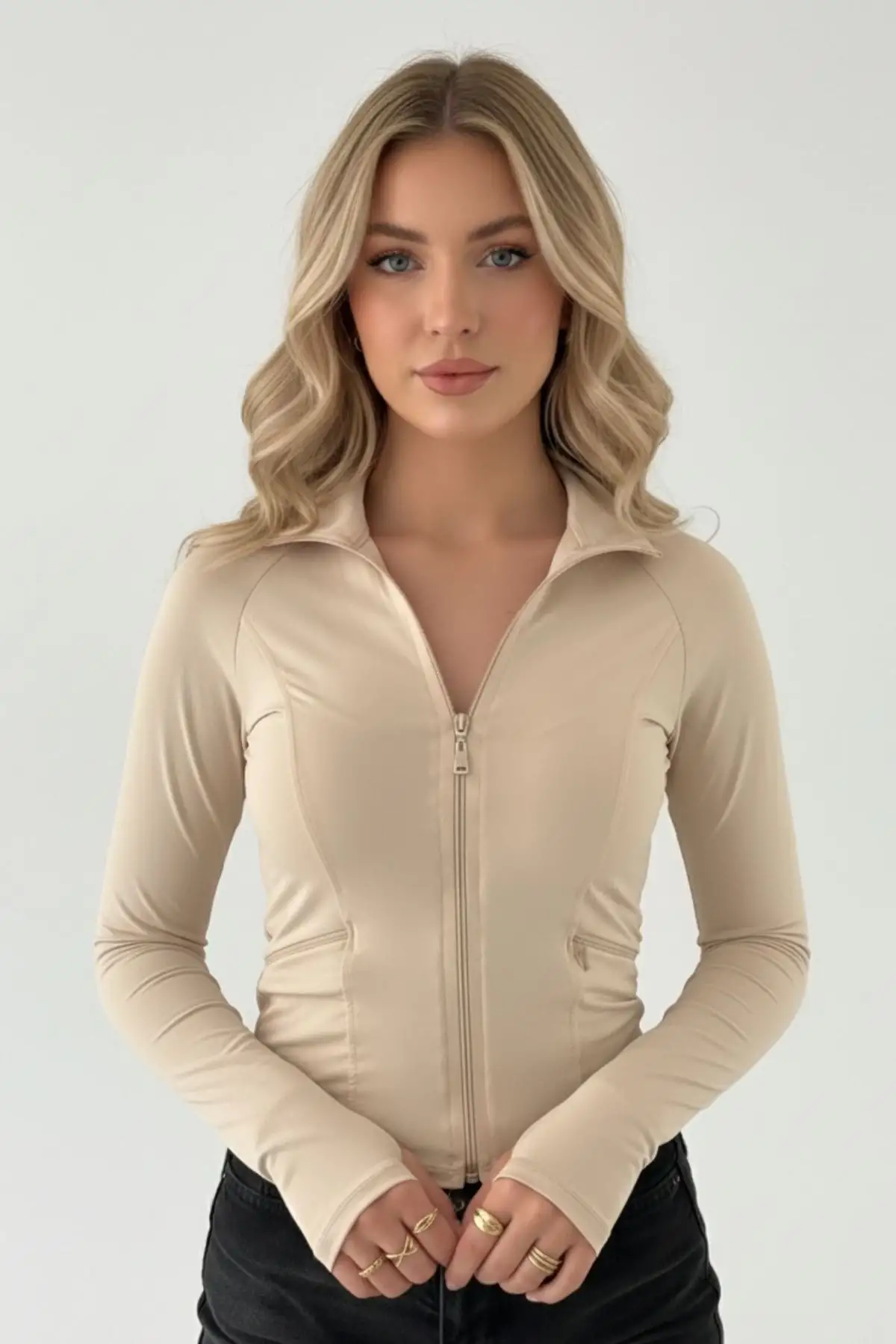 BEJ Rover Basic Slim Fit Fermuarlı Bluz